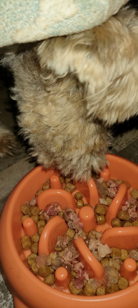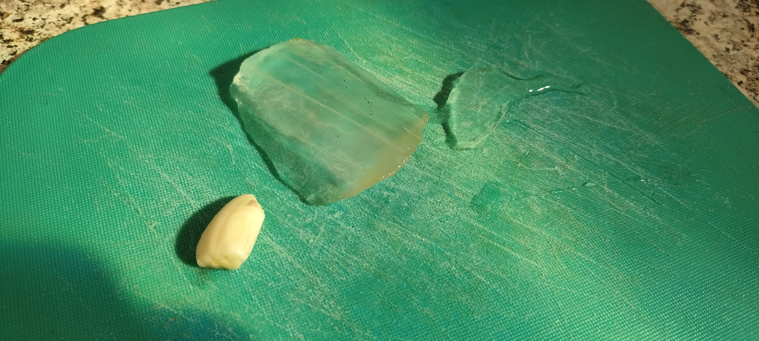 Bimba bekommt jetzt zu jeder Mahlzeit etwas frische Aloe Vera. Mittags auch mal eine Knoblauch Zehe.
