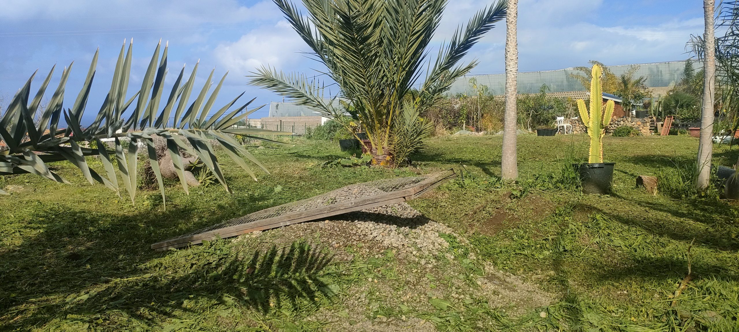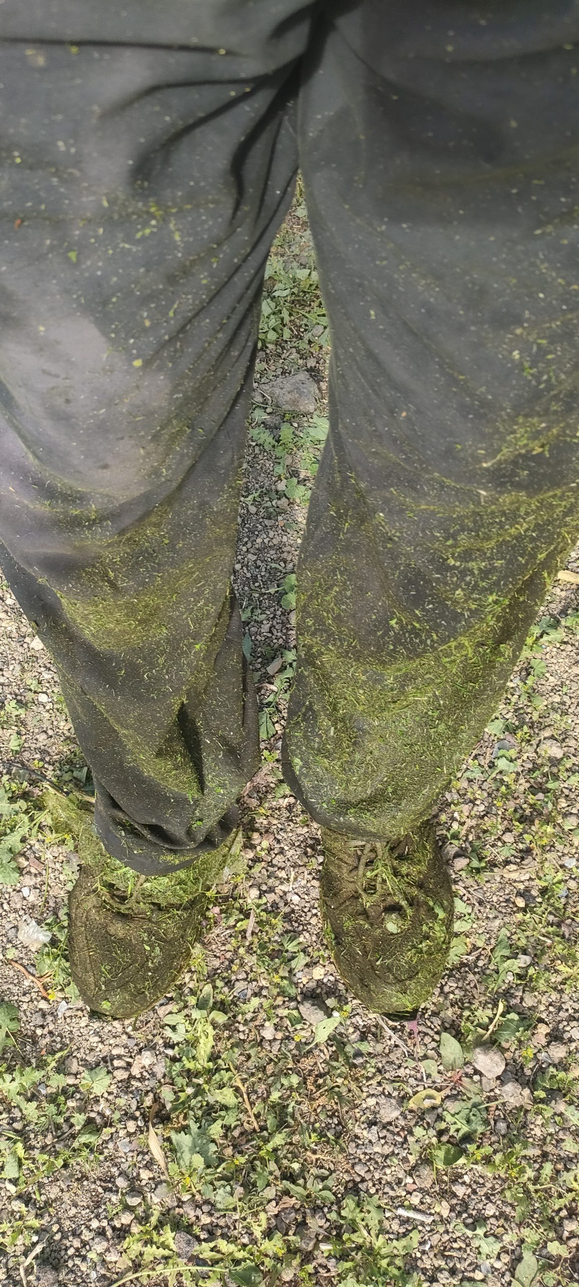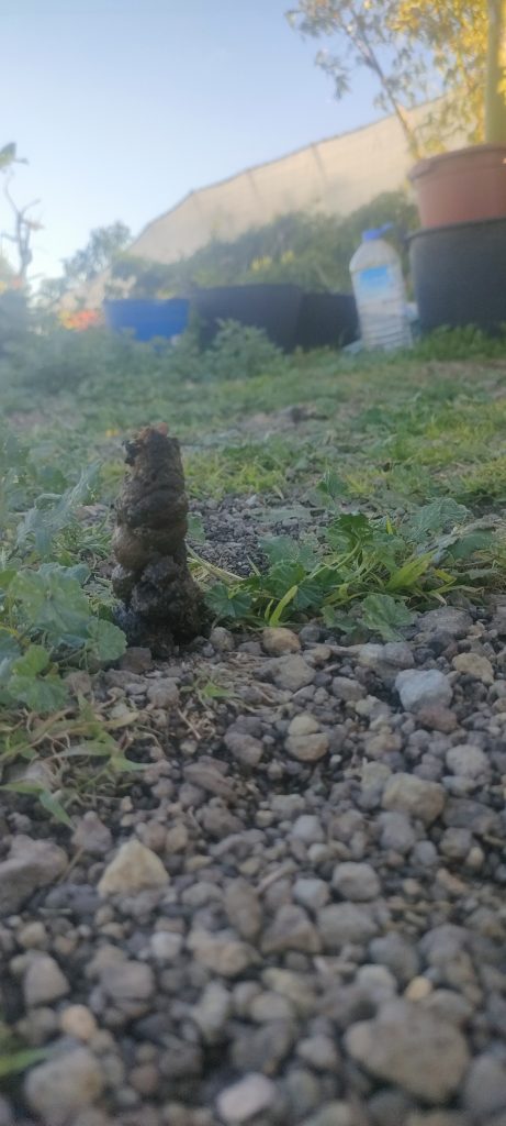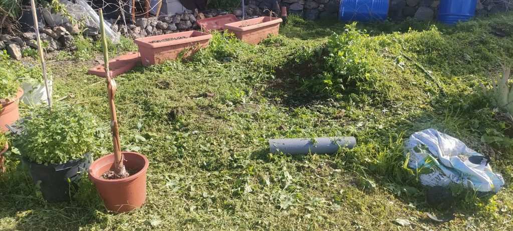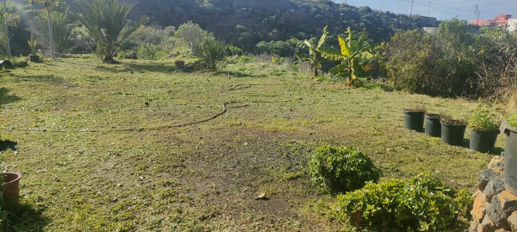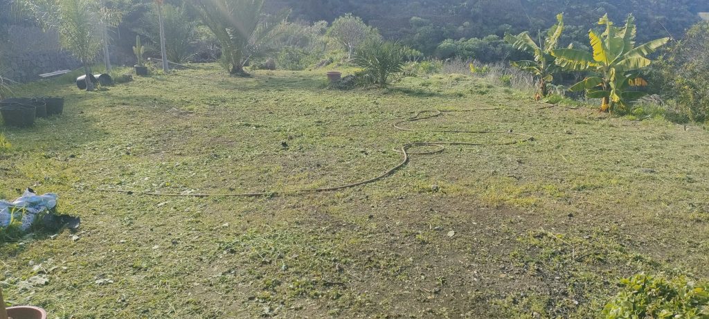 Bimba’s Häufchen sind nicht immer so gut sichtbar, darum begann ich heute am Eingang zu mähen.