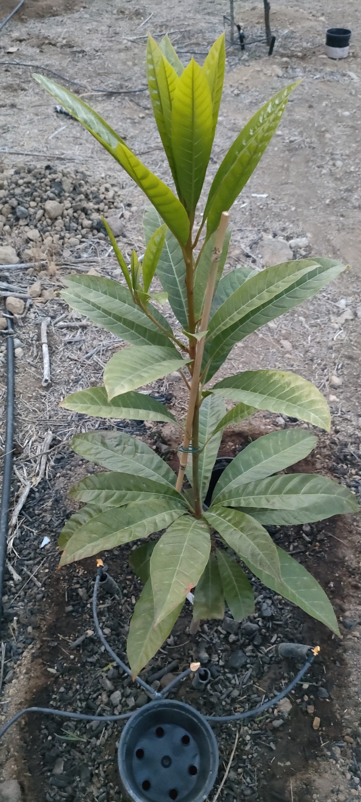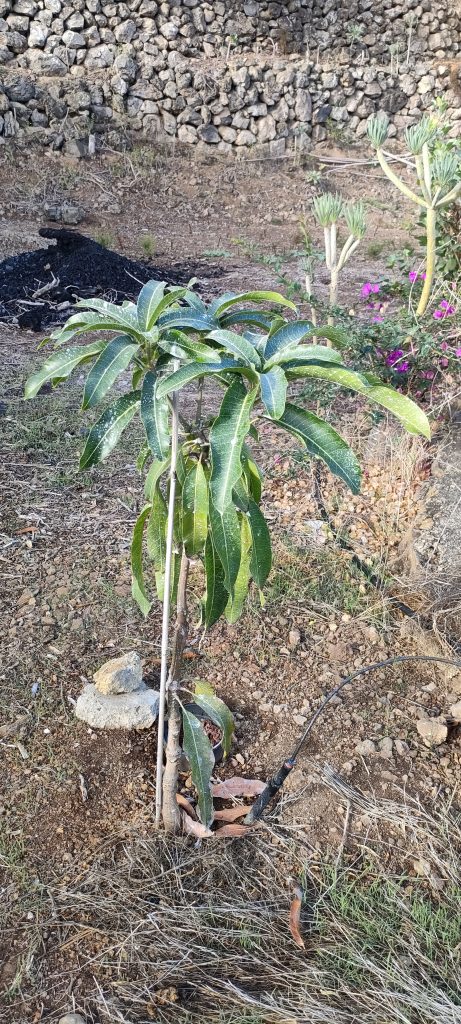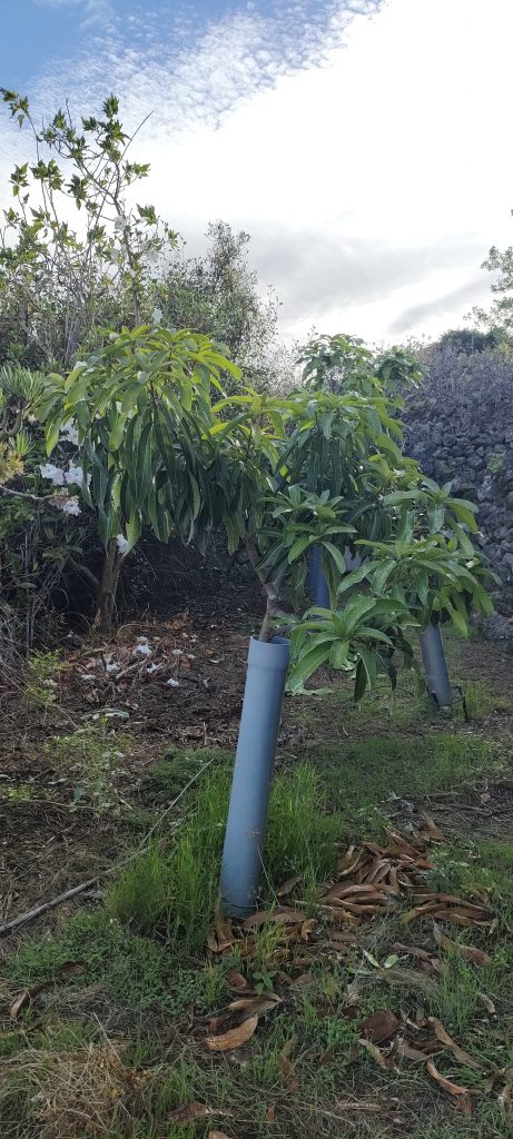 Man sagt dem Canistel nach, dass er langsam wächst! Doch seit meiner im Boden steht, scheint er ordentlich zu treiben. Das Doppel GöGˋs Wurzelbooster System mit viel gesättigter Pflanzenkohle scheint sich zu bewähren.