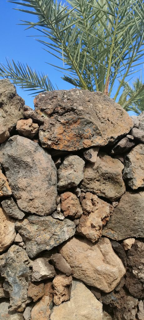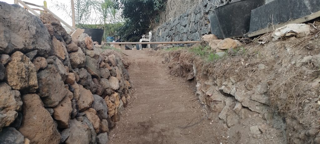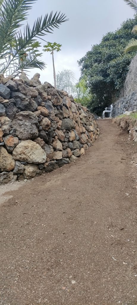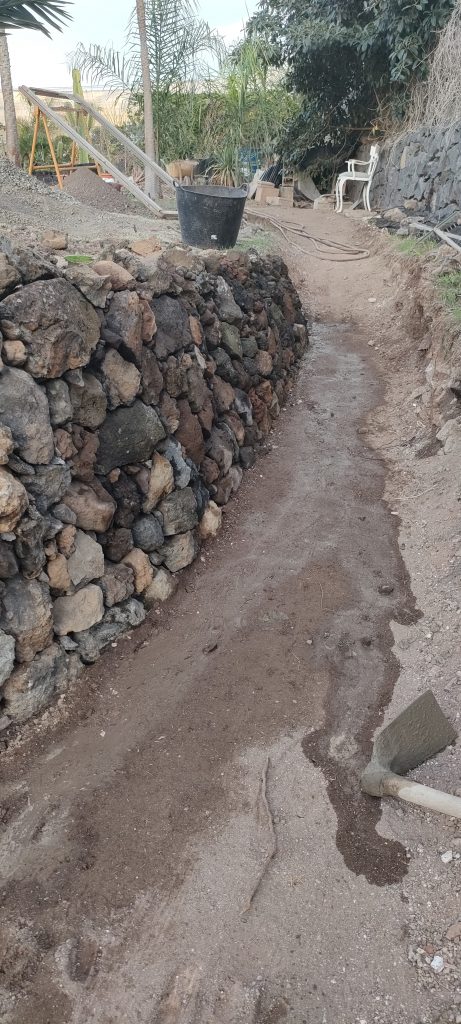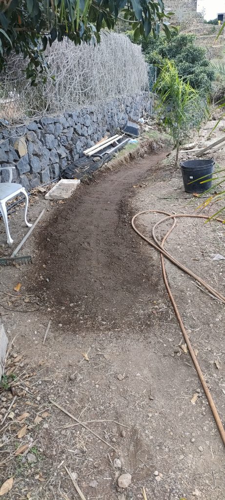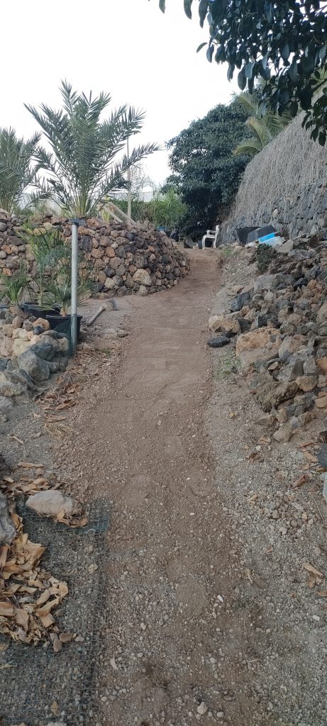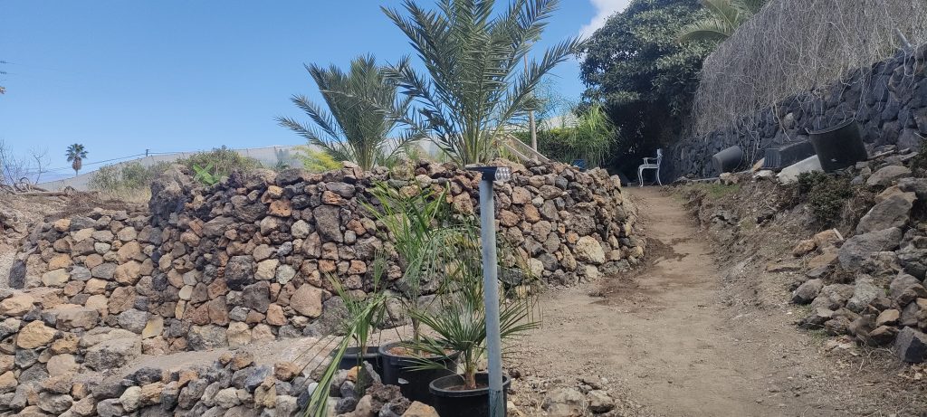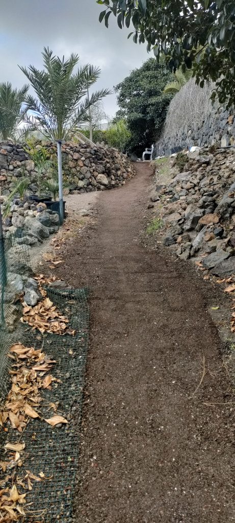Jedes mal wenn ich Schutt ins Tal bringe, hole ich ein paar alte Lava Steine, in allen Farben. Damit macht es auch Spaß, den wichtigsten Weg auf der Finca zu schmücken!