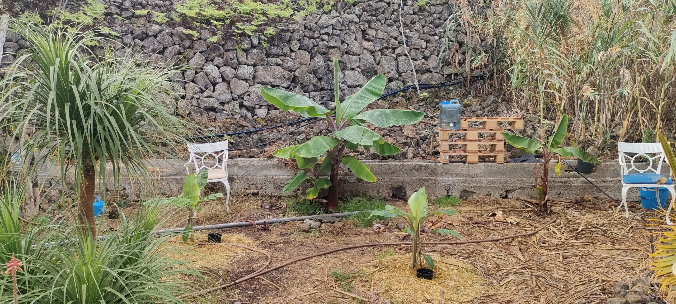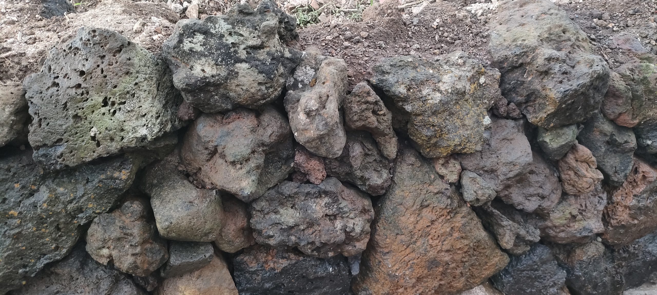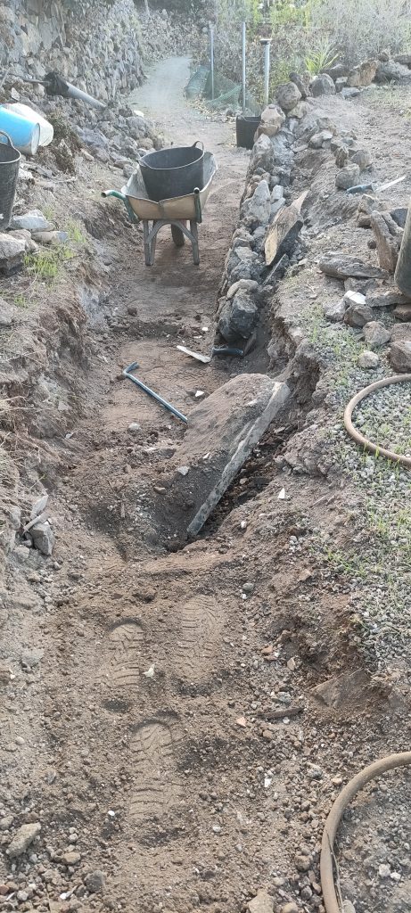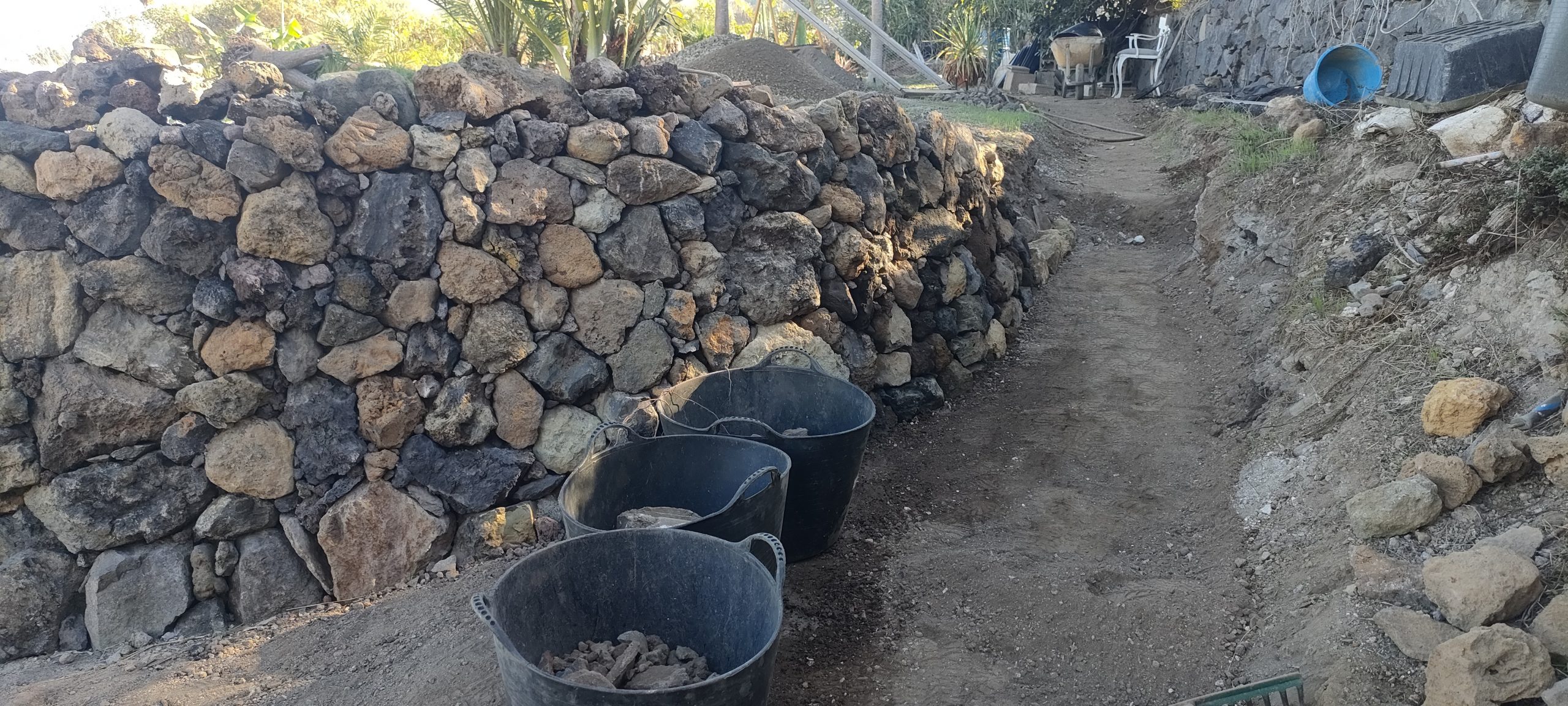 Jedes mal wenn ich Schutt ins Tal bringe, hole ich ein paar alte Lava Steine, in allen Farben. Damit macht es auch Spaß, den wichtigsten Weg auf der Finca zu schmücken!