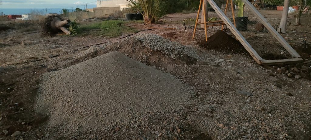 Ein großteil der Zeit geht fürs Vorbereiten drauf. Sand, Kies sieben und dahinter siebe ich neuen Aushub vom Weg.