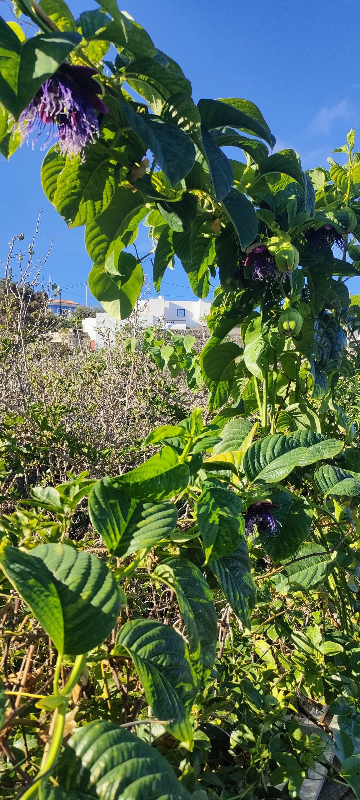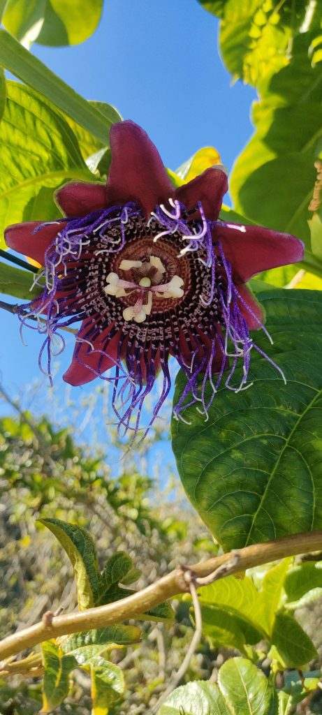 Bei mir blühen die Granadillas wie irre! 🥳 Gestern betörten mich fünf Blüten bei der Arbeit, weil der Duft genau auf den Panorama Weg zieht. Kein Zufall! 😀