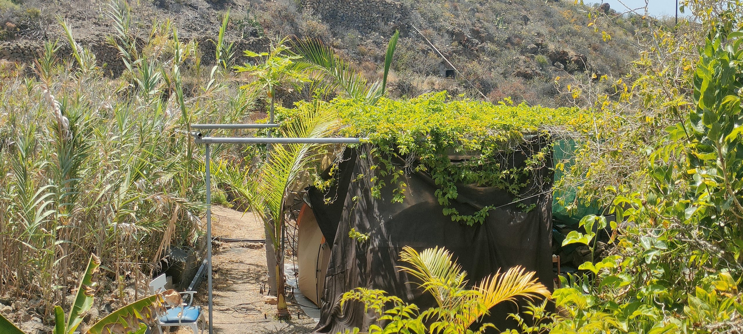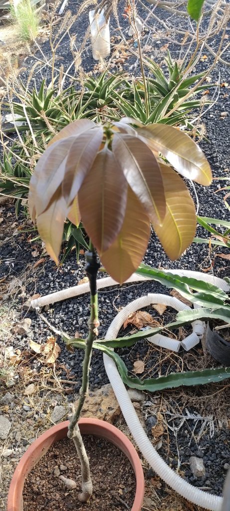 Hinter dem Park Pavillon schiebt sich endlich die erste Königspalme über das Dach. Bald bekommt mein Schattendach Schatten! ☺️