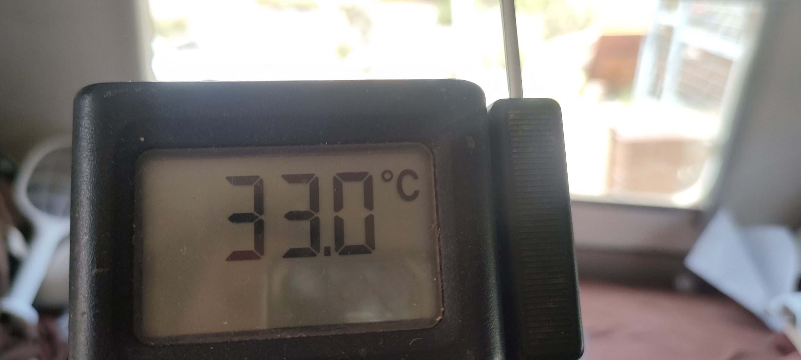 Vielleicht ist es noch einen Tick wärmer, weil gestern hatte ich nur 30º Im Wohnwagen. Es soll die Tage aber wieder etwas nachlassen.