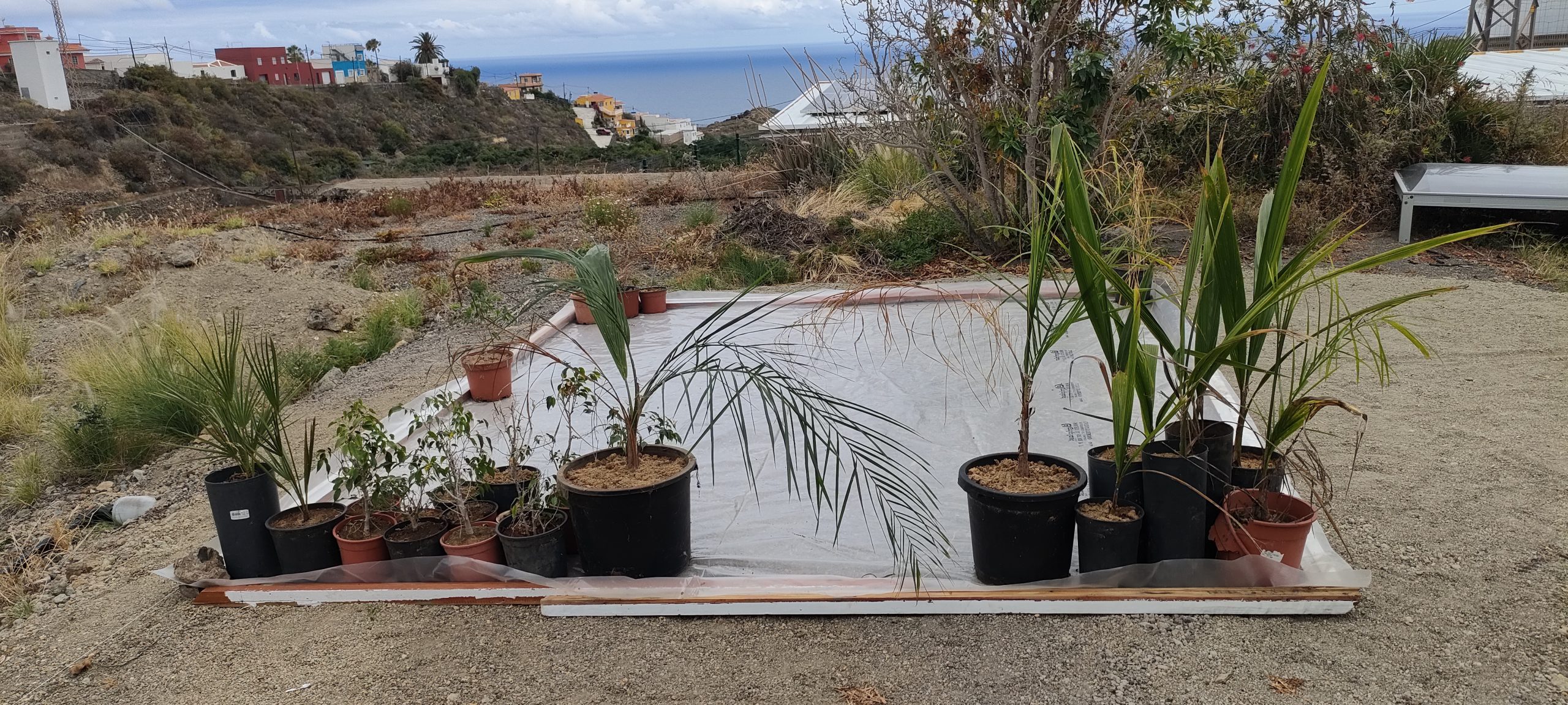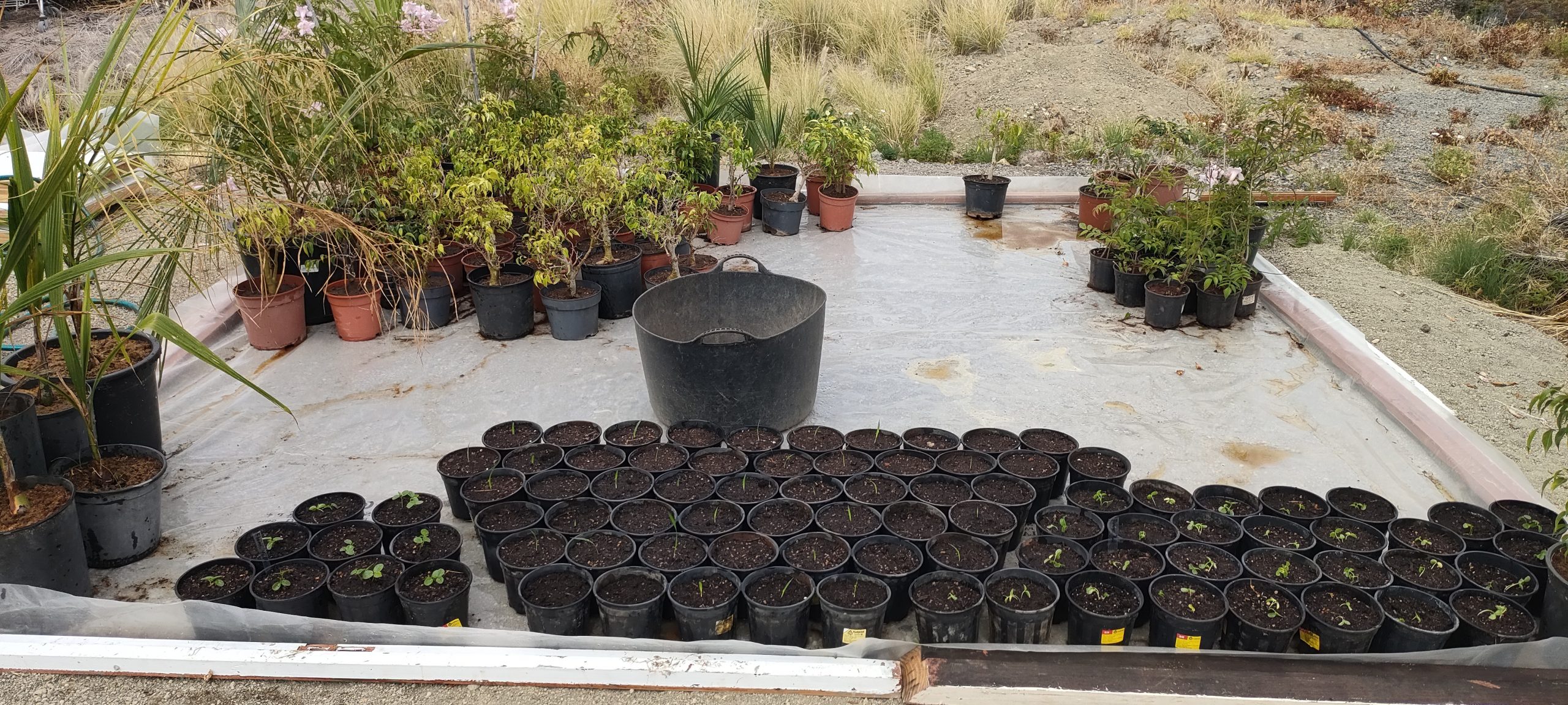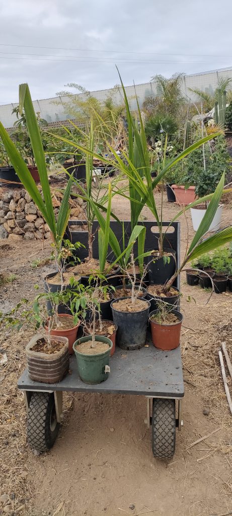 Links stehen noch zwei Zwergfächerpalmen aus eigenen Samen und rechts hab ich ein paar Coco Palmen zur Reserve. ⬇️