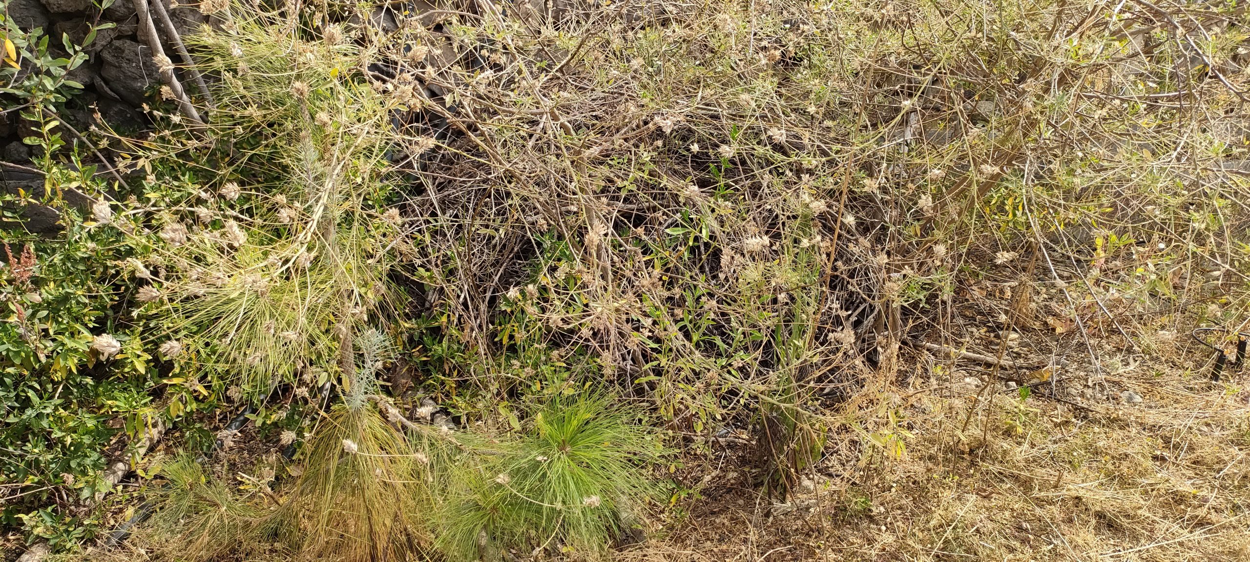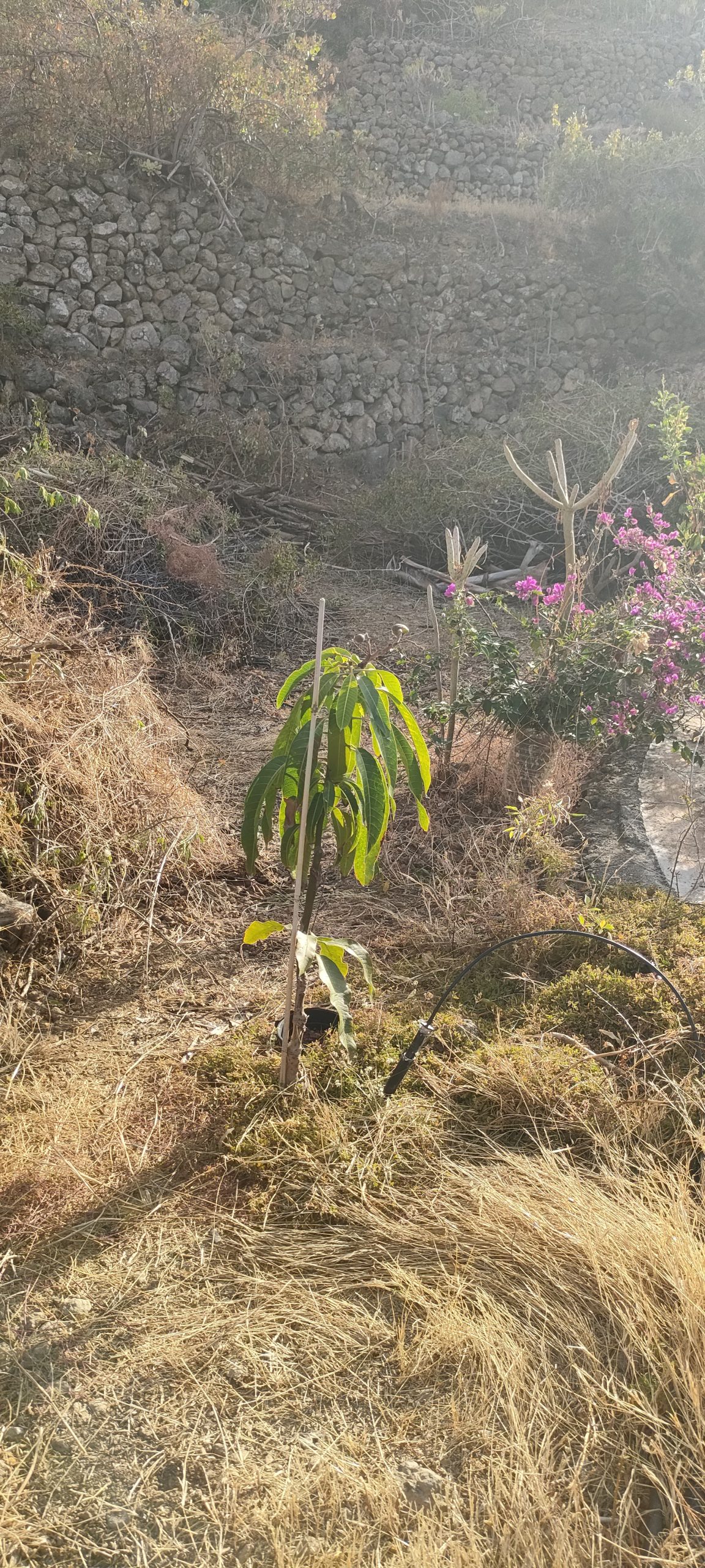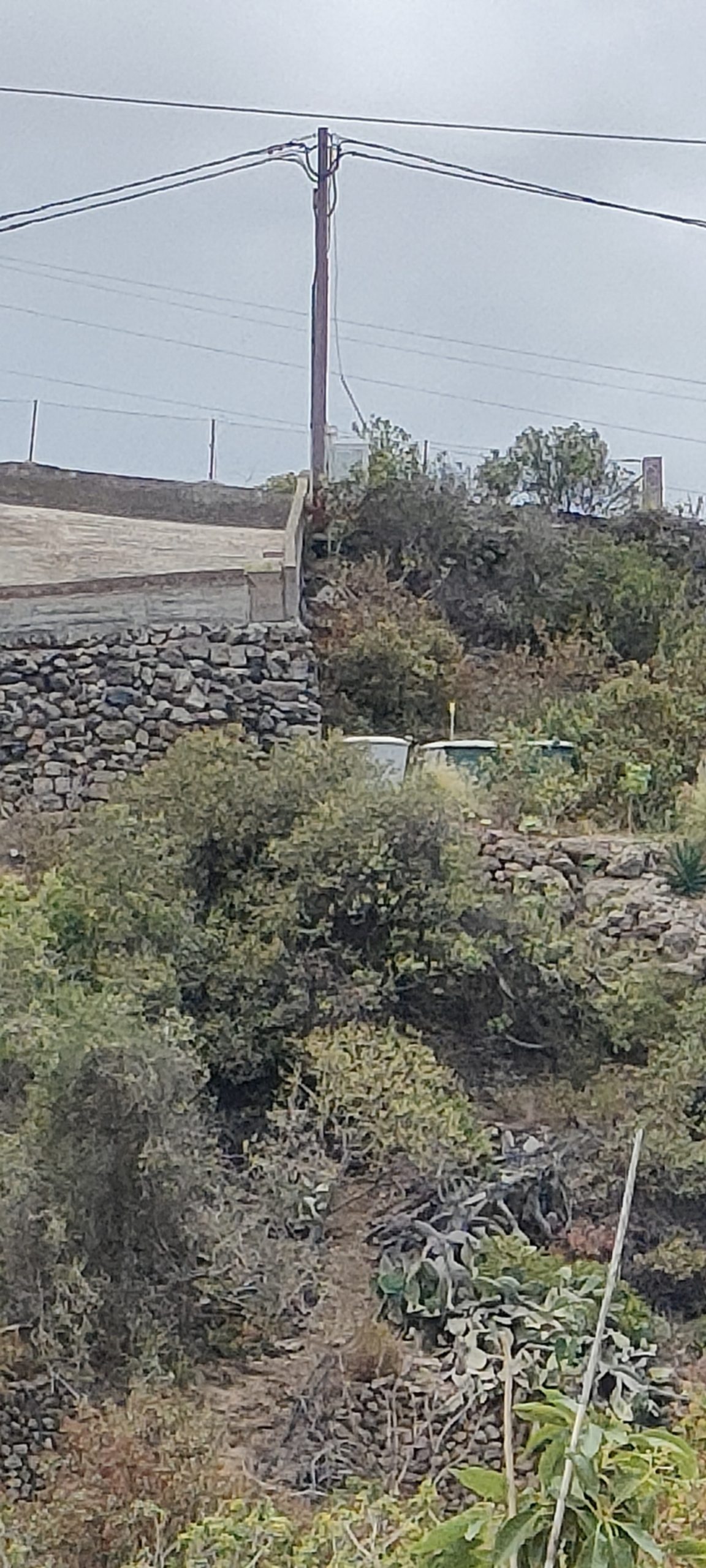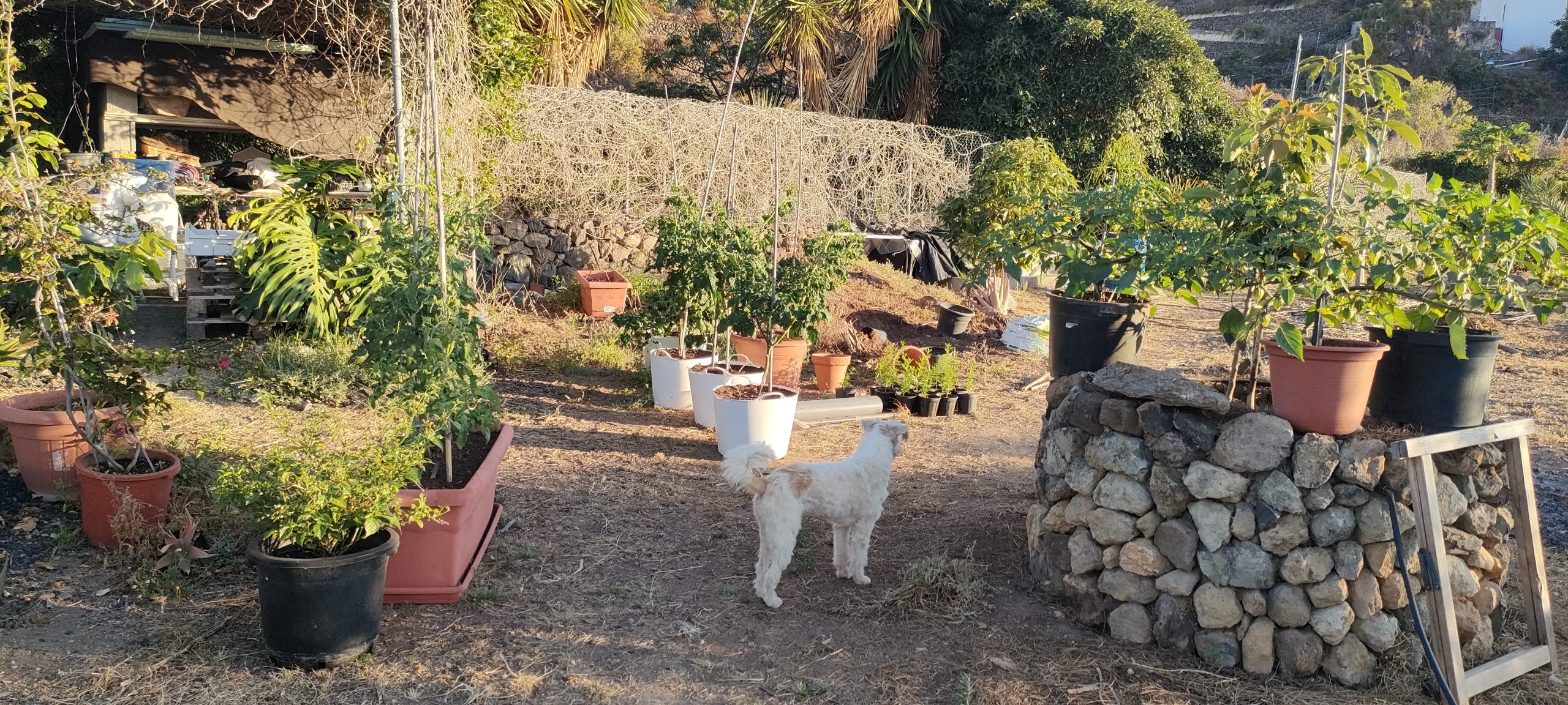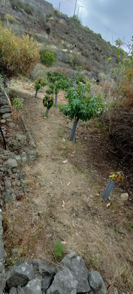 Viel von diesem Gestrüpp kommt bald frisch in den Häcksler.Aus dem Mangogarten gesehen. Die Pfosten, ganz oben, sind meine Ecken.Vom Orangengarten aus gesehen. 😀Erst wenn die Feige und das Gestrüpp weg sind, sieht man den ganzen Komplex!