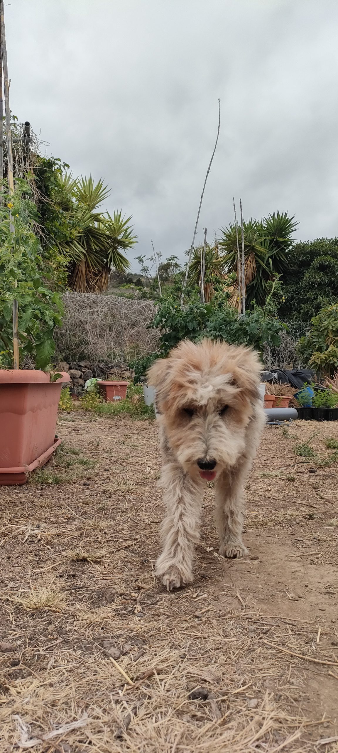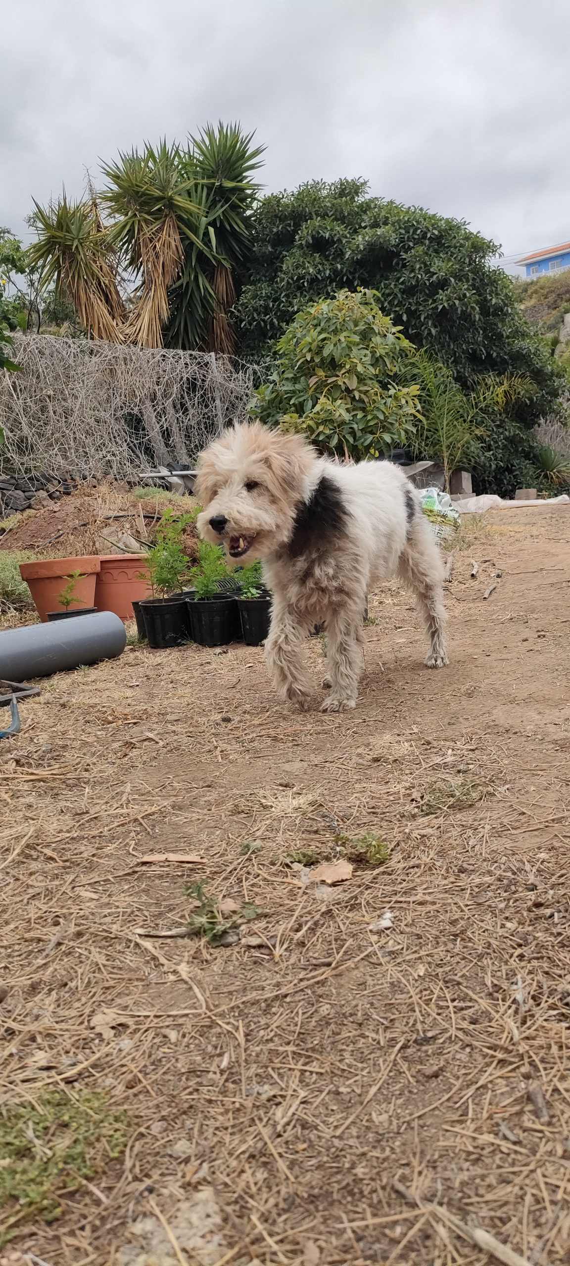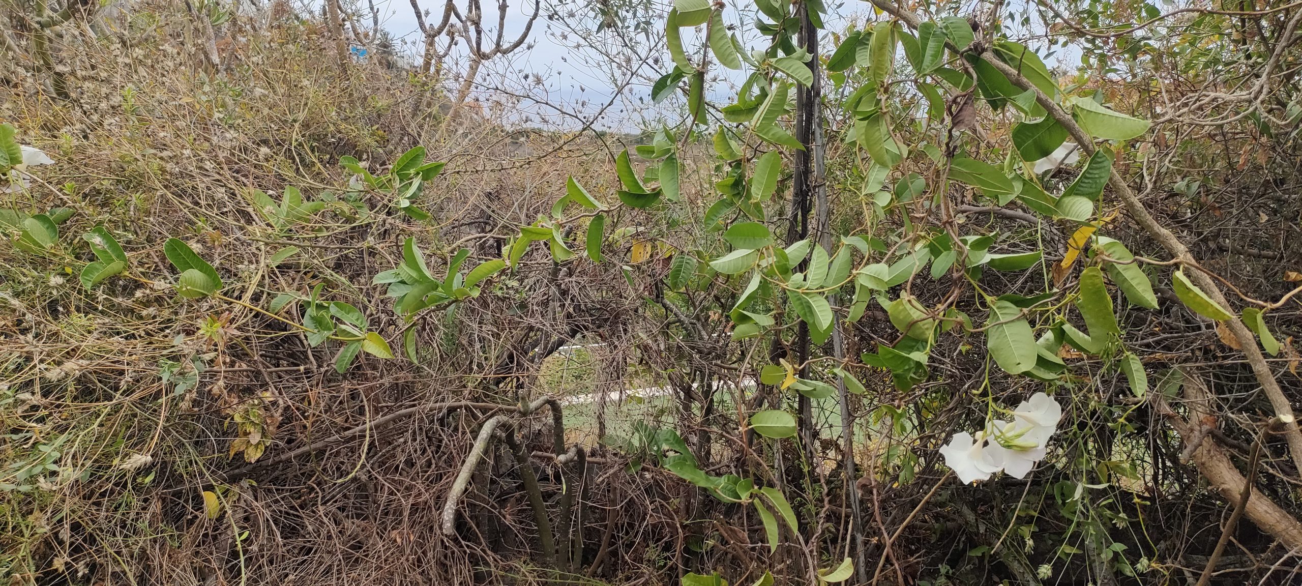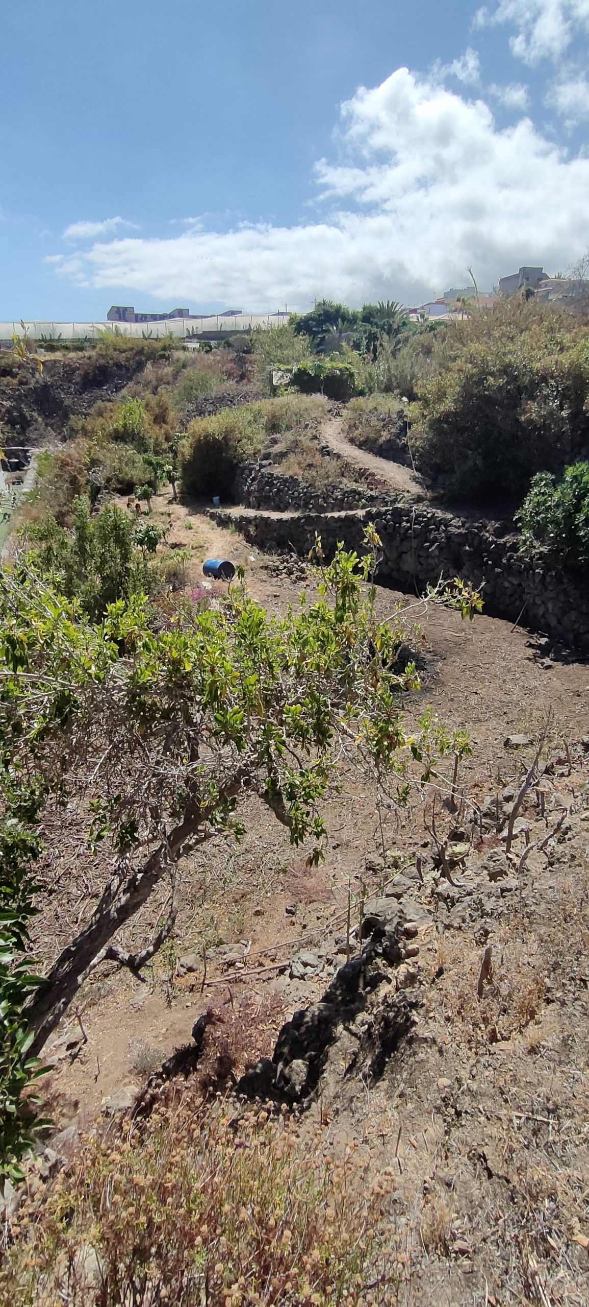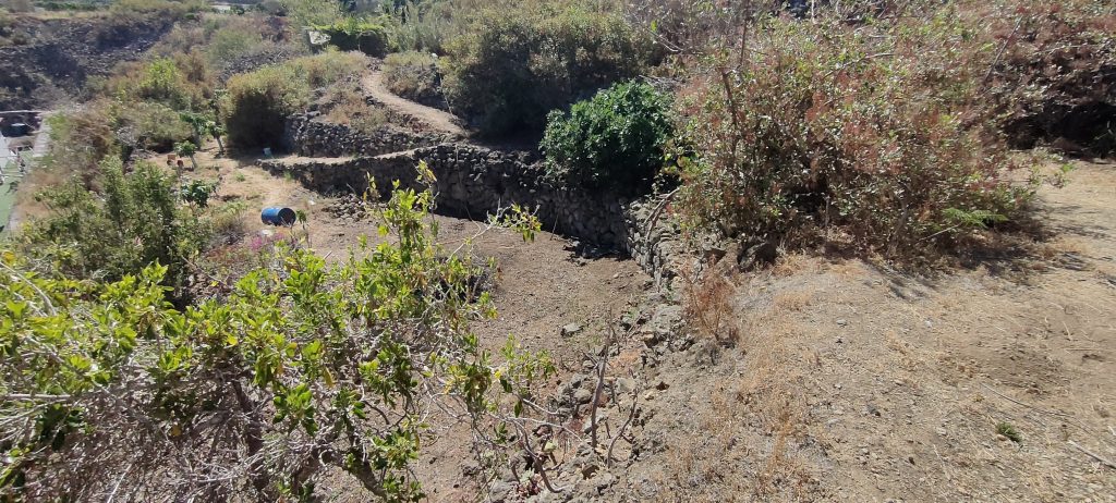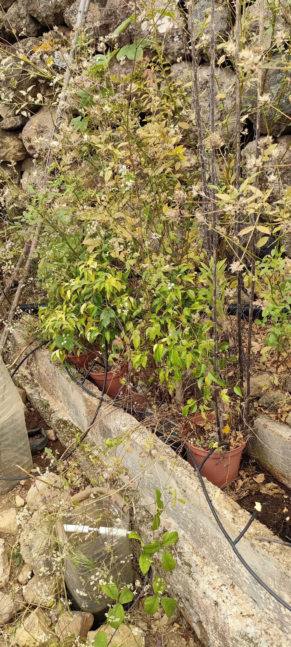 Viel von diesem Gestrüpp kommt bald frisch in den Häcksler.Aus dem Mangogarten gesehen. Die Pfosten, ganz oben, sind meine Ecken.Vom Orangengarten aus gesehen. 😀Erst wenn die Feige und das Gestrüpp weg sind, sieht man den ganzen Komplex!