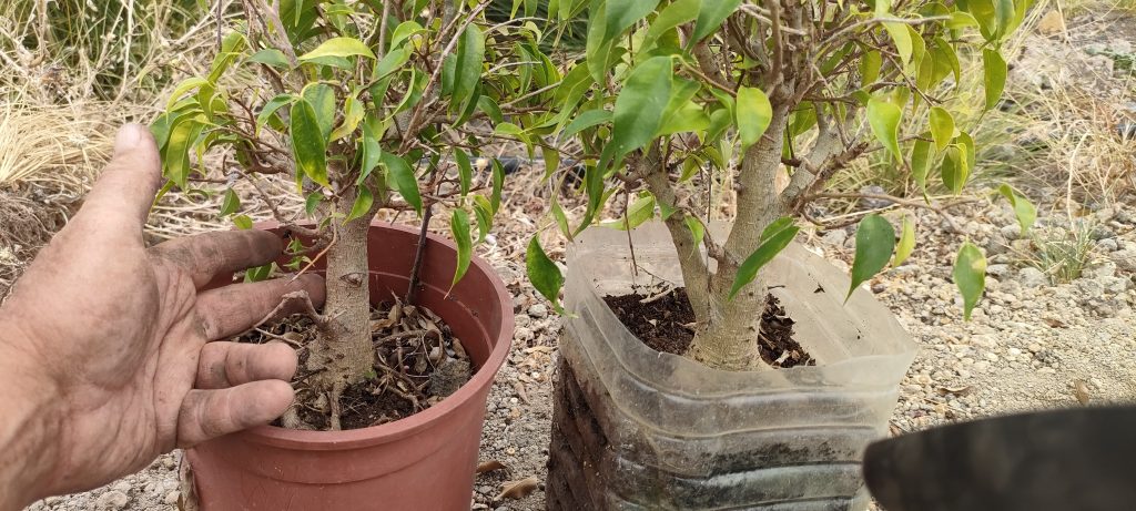 Erinnert ihr euch an die zarten Ficus, Bonsai Rohlinge, die ich vor Jahren in dem alten Wasserkanal vorgezogen hab?