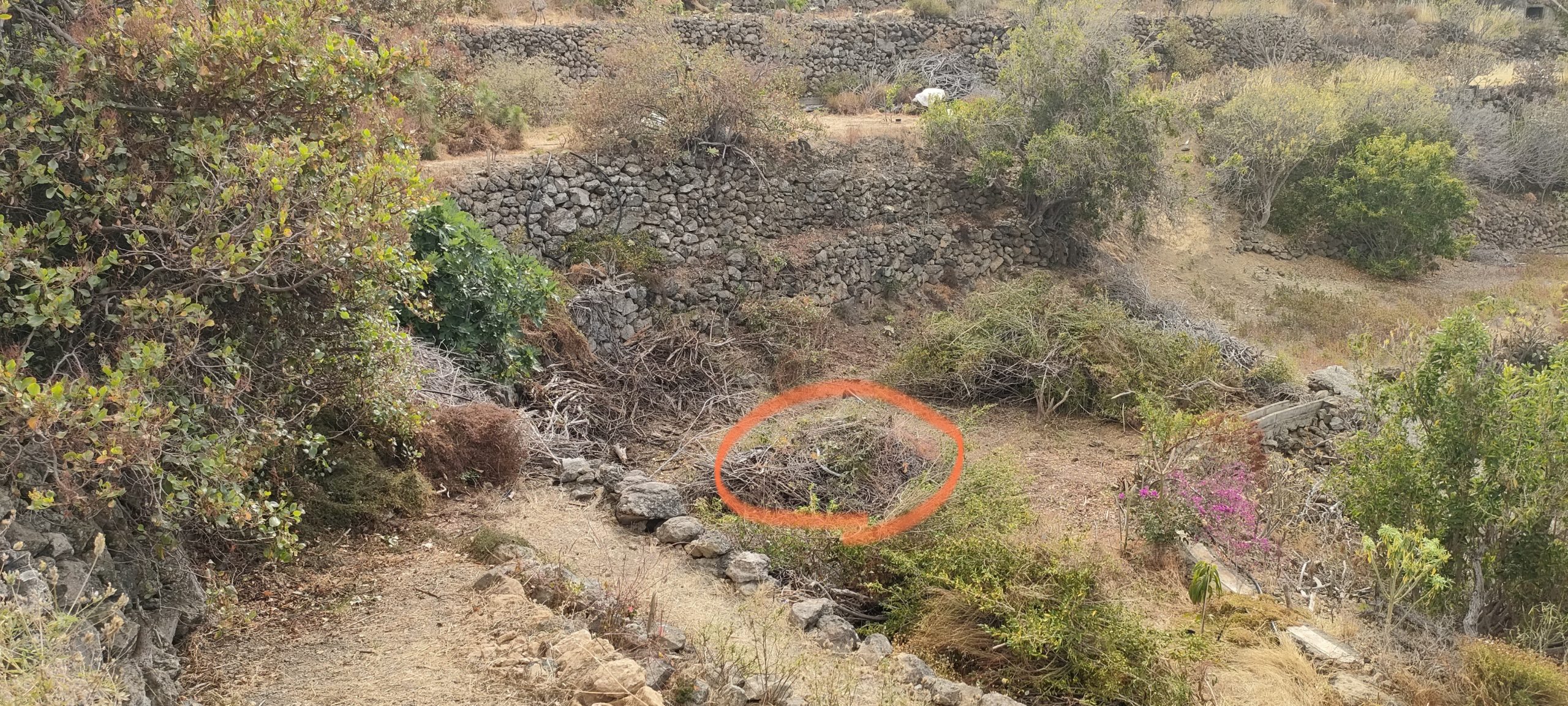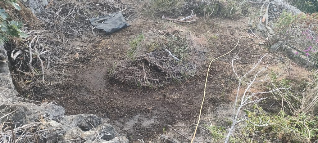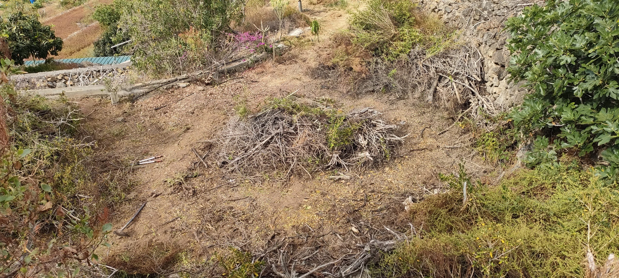 Vor dem Feigenbaum lag der riesen Haufen aus Dornen. ⬆️ Die Feige muss weg und das soll ein Pfad mit Sitzplätzen werden. Die Ehrentribühne! 😀