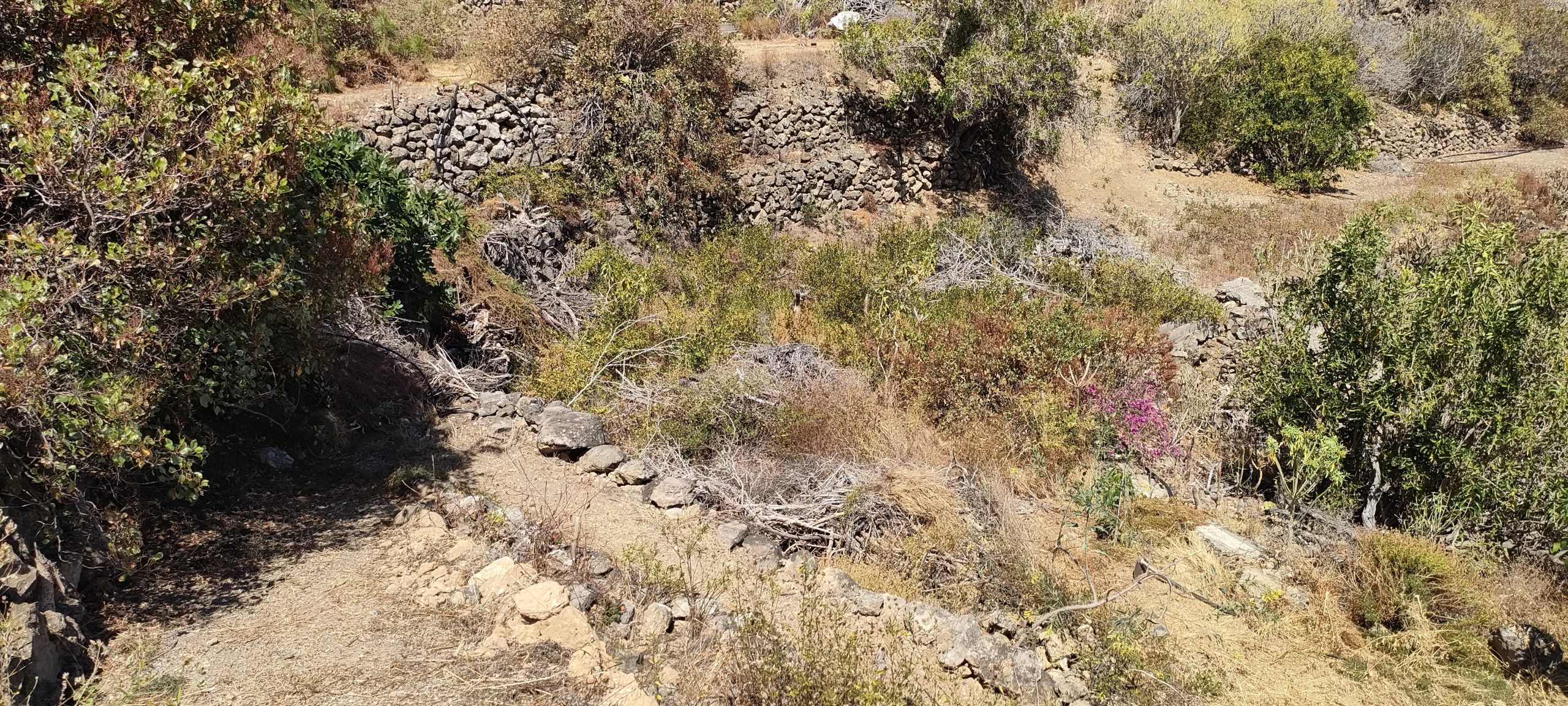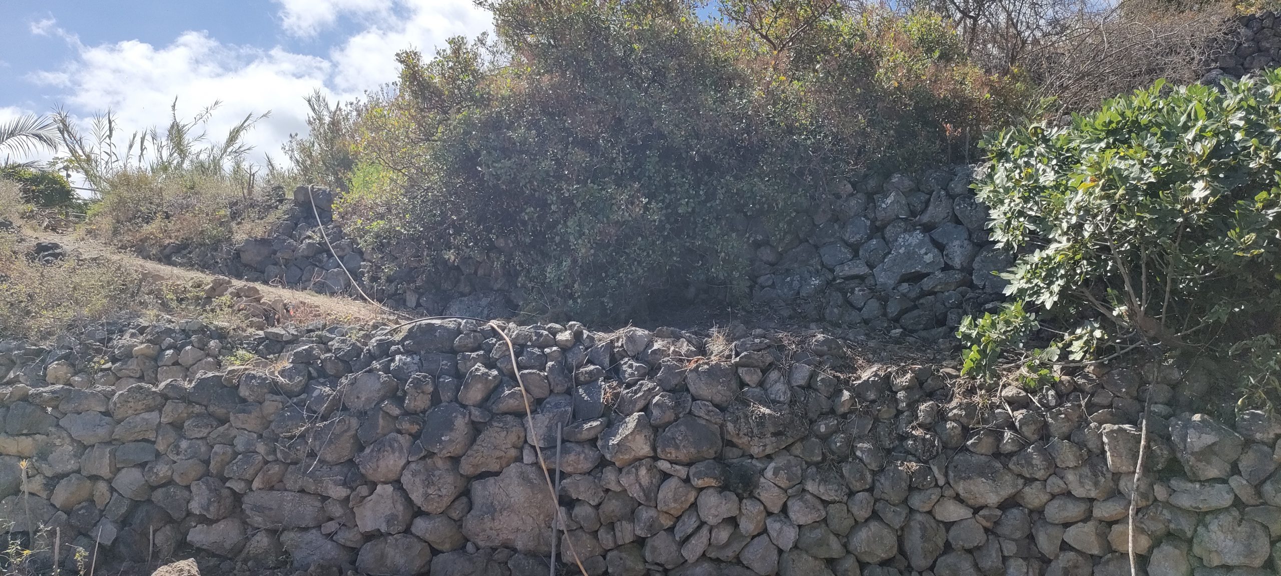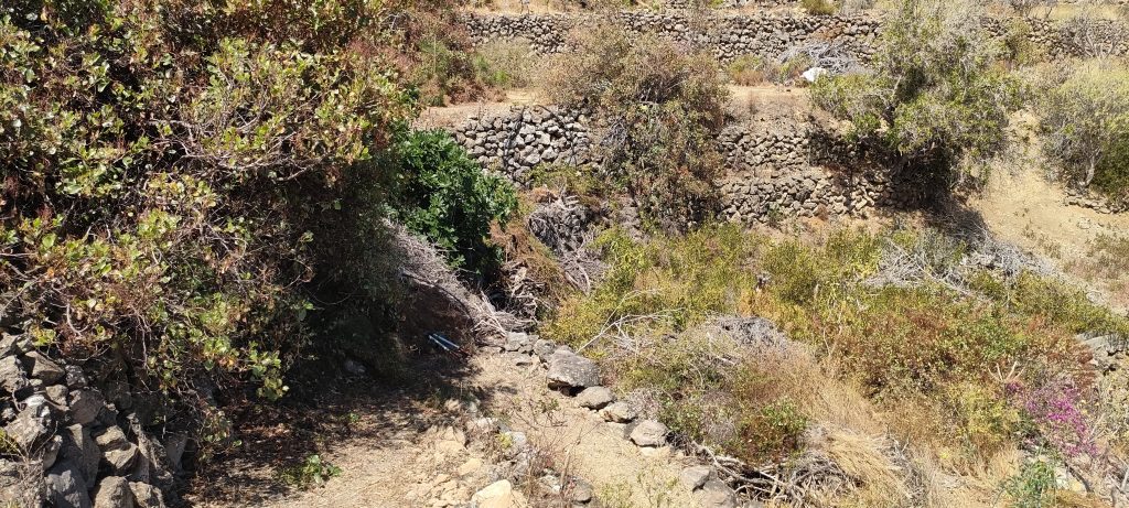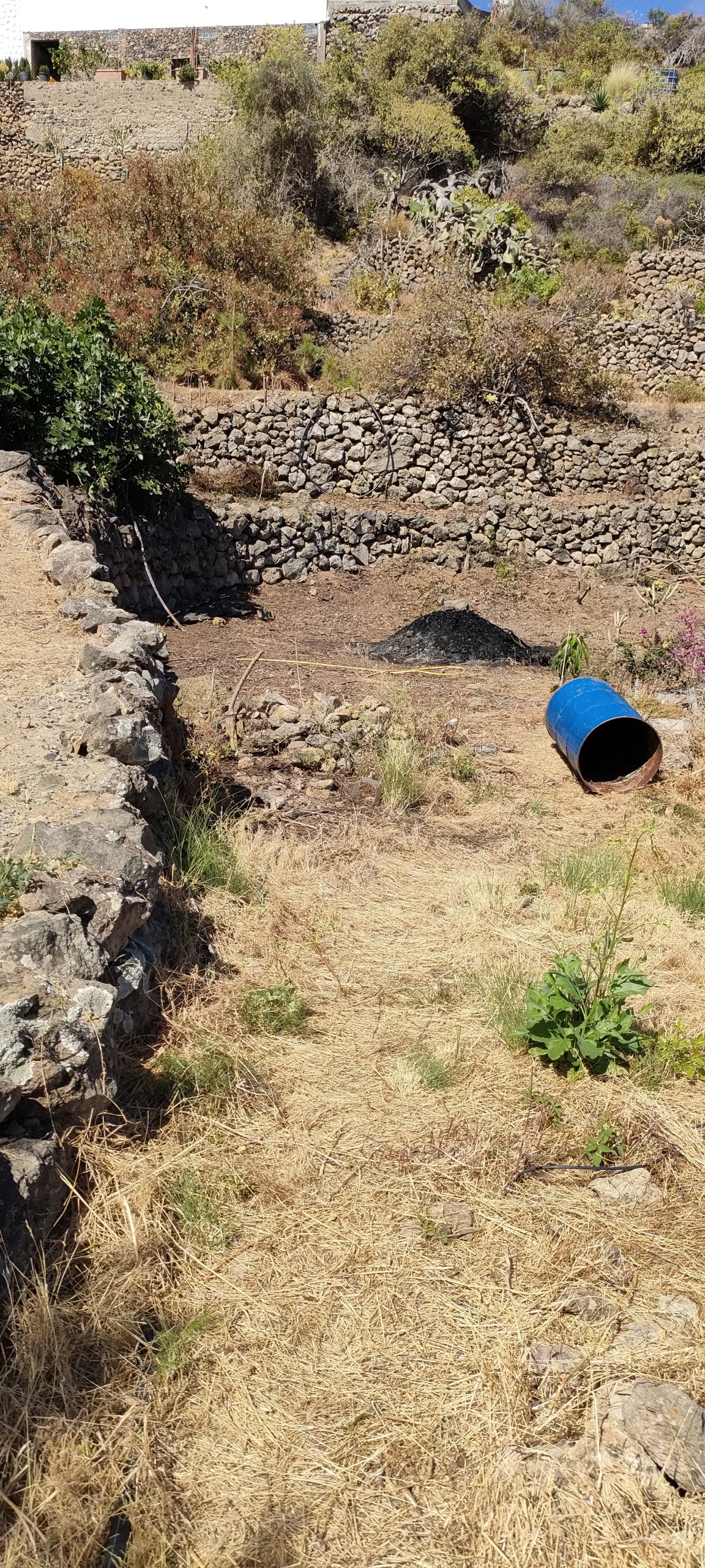 Vor dem Feigenbaum lag der riesen Haufen aus Dornen. ⬆️ Die Feige muss weg und das soll ein Pfad mit Sitzplätzen werden. Die Ehrentribühne! 😀