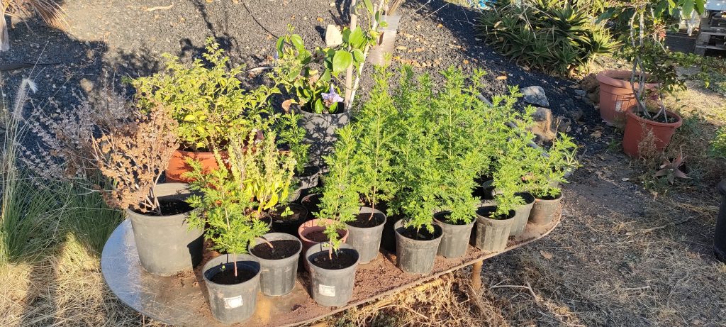 Rechts, Physalias und Coco blickt auf noch mehr Artemisia. Es gibt aber noch viele mehr zum Pikieren!