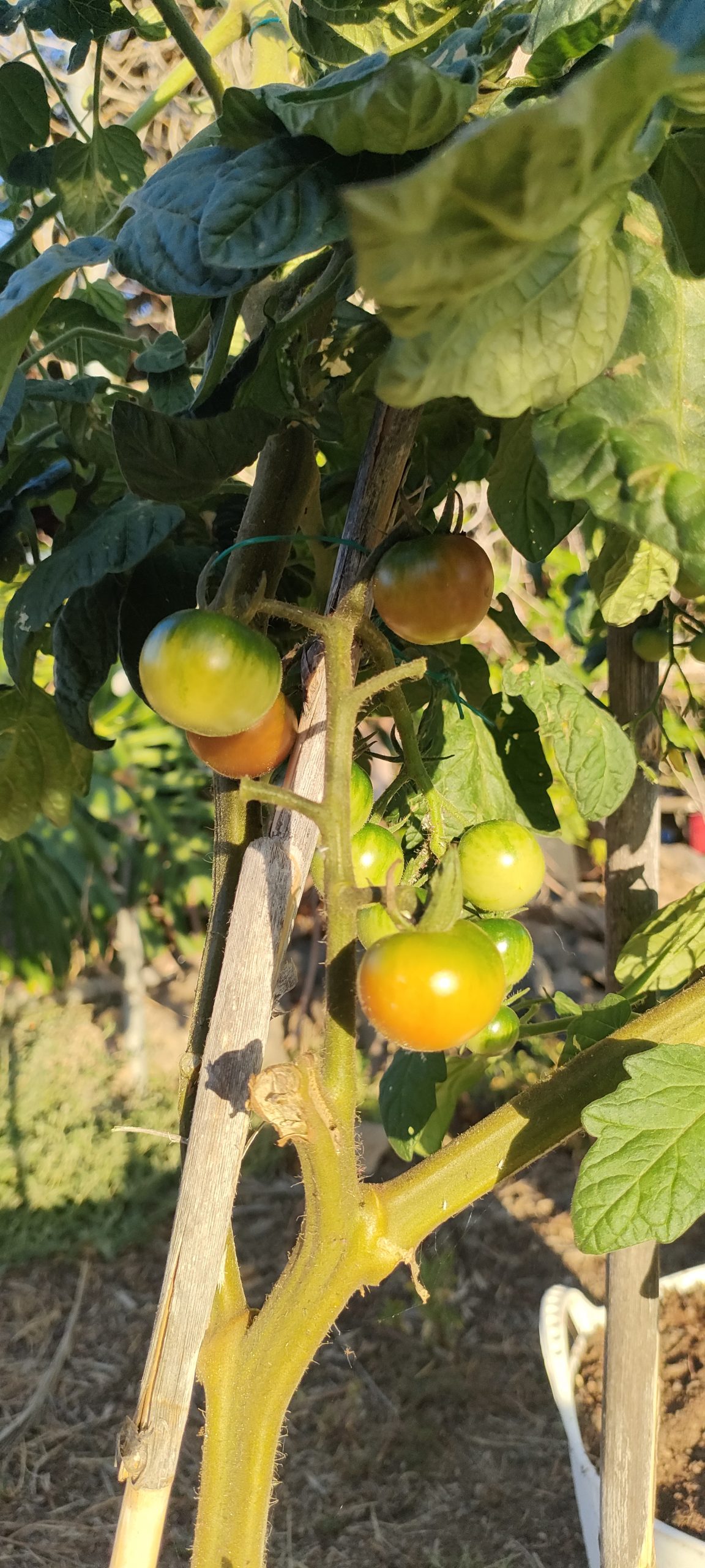 Zuckertraube Tomaten sind nach wie vor die Favoriten und sie werden langsam rot.