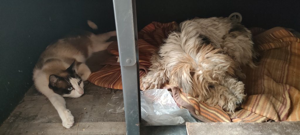 Haruki schleicht sich in die Höhle der Bimba. ❤️ Er hat mehr Respekt vor dem kleinen schwarzen Kätzchen Mini! 😀