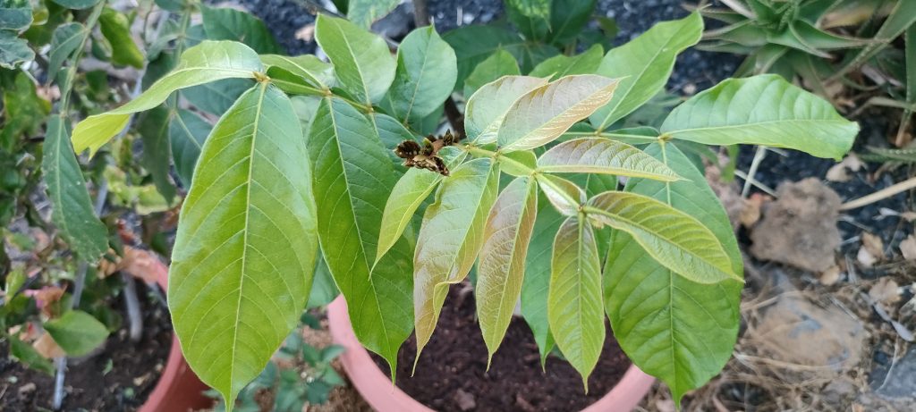 Auch der arme Kakao Baum, der leider immer noch im Topf steht, scheint regelrecht aufzuleben!