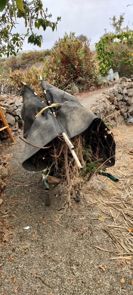 20m. Aus dem Mangogarten schleppen, dann 80m. auf der Schubkarre, macht die Arbeit wesentlich angenehmer!