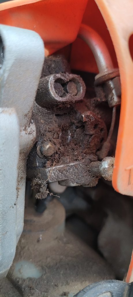 Soweit zu meinem Mäher: Vor einem knappen jahr gab ich ihn ab und sagte, man müsse den Vergaser reinigen! Diese Bauern Deppen lachten! Er wurde vier mal repariert für über 100€ und bevor ich ihn nochmal abgebe, wollte ich nochmal unters Gehäuse schauen. Eine von zwei Gehäuseschrauben ist ausgebrochen! Das ist alles was diese Pfuschmurkser hin bekamen! Jetzt heisst es, ich bräuchte einen neuen Vergaser, weil eine Membran kaputt geht, wenn man das Gerät zu lange nicht benutzt. Wenn dieser Totalversager gleich das gemacht hätte, was ich ihm gesagt hatte, wäre es beim ersten mal erledigt, aber diese Einsteins, wissen mit ihrem dummen Stolz, anscheinend alles besser!