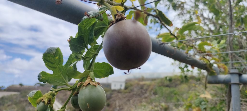Im Parkpavillon hängt die erste rote Maracuja! 🥳