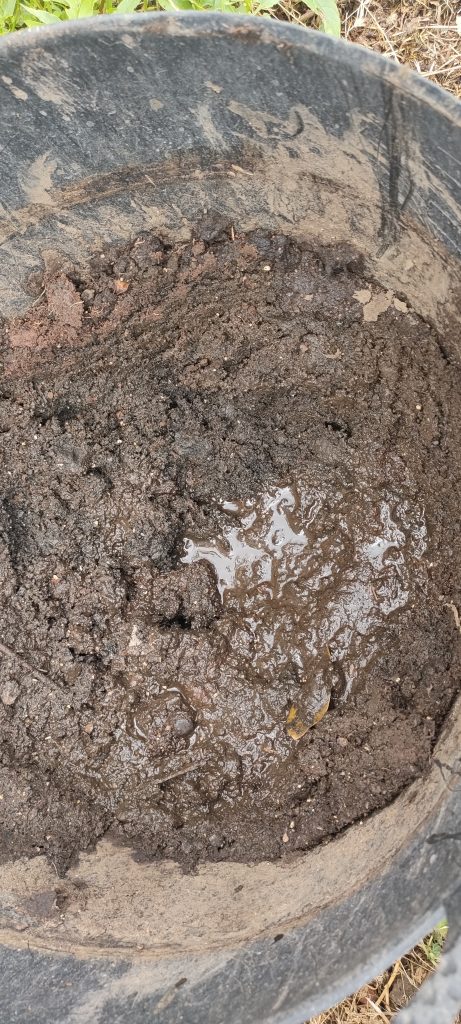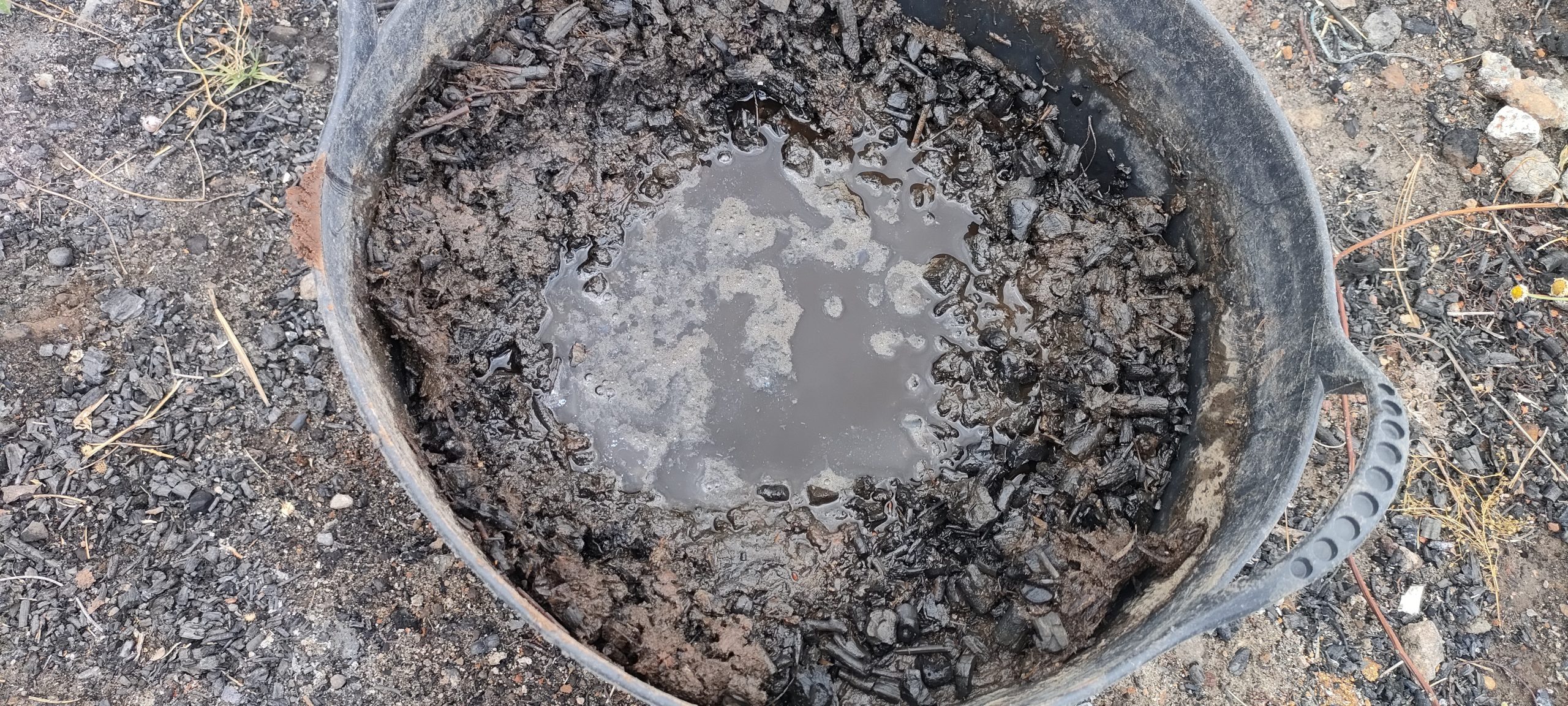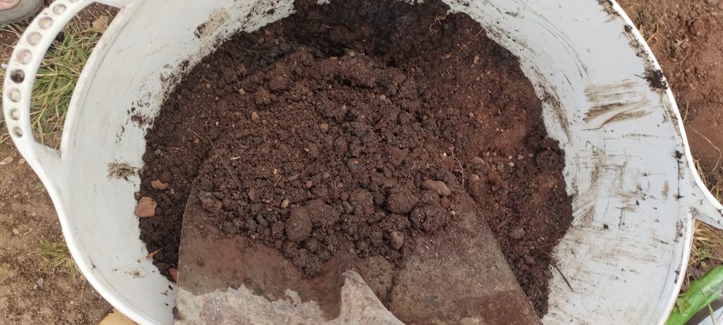 Gebrauchter Erdmix vom Erdhügel, mit gesättigter Kohle und fermentiertem Mist.