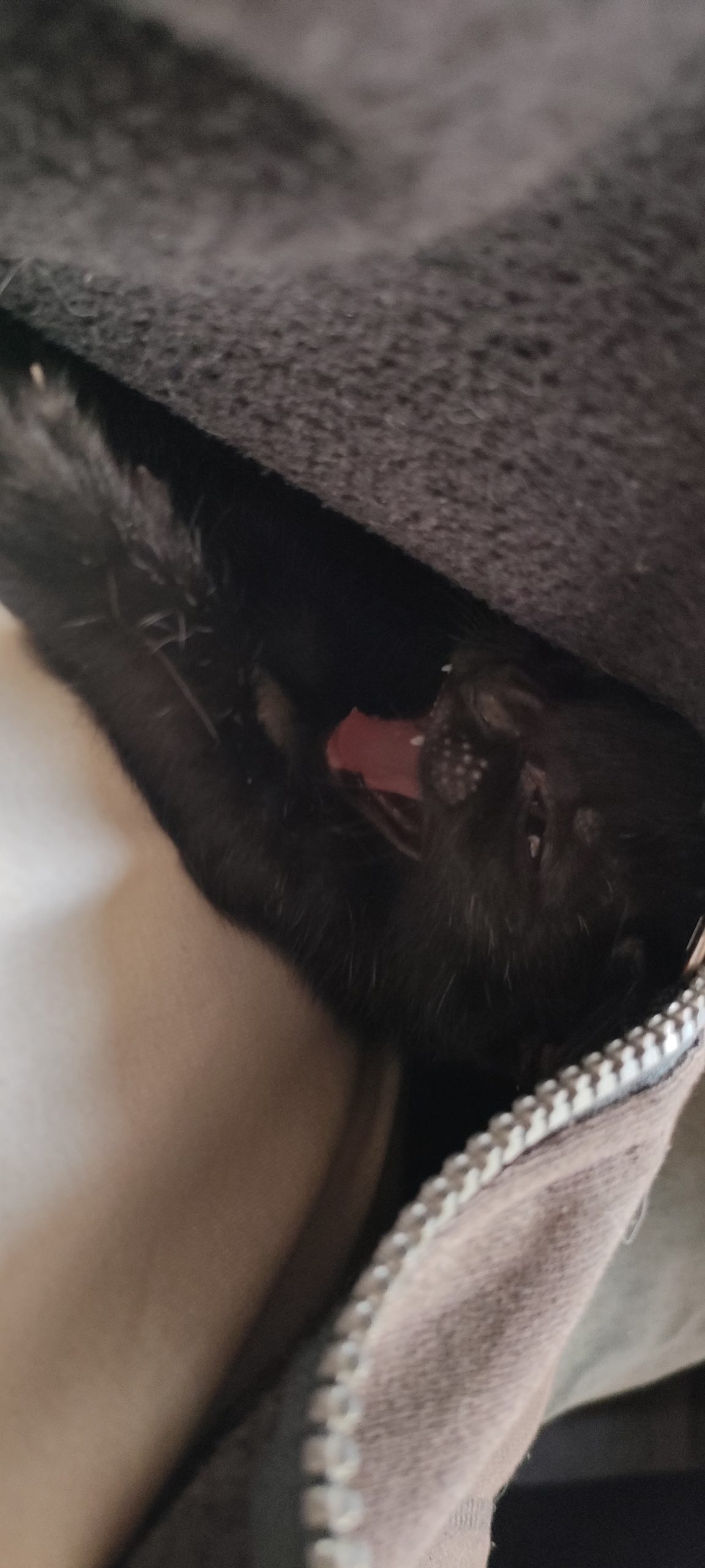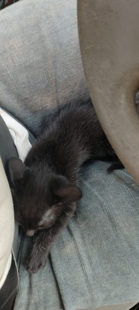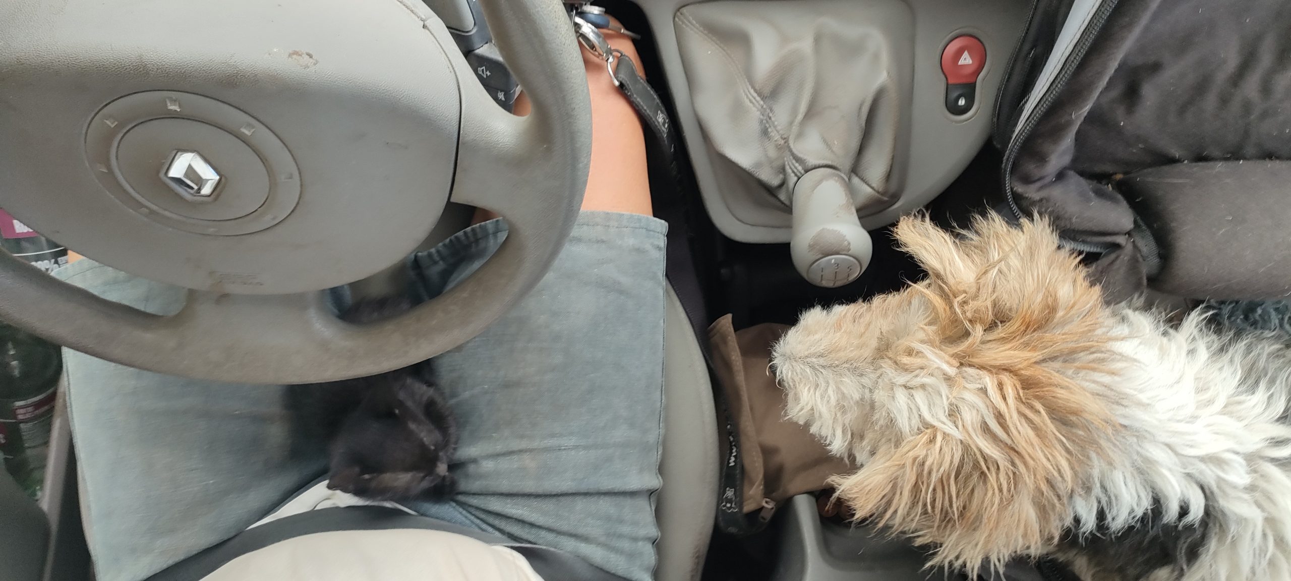 Mini ist mit ihren vier Wochen extrem anhänglich! Erst als sie beim Fahren in meinen Schoß gekuschelt war, gab sie Ruhe. Wie meine Shakti damals! 🥰