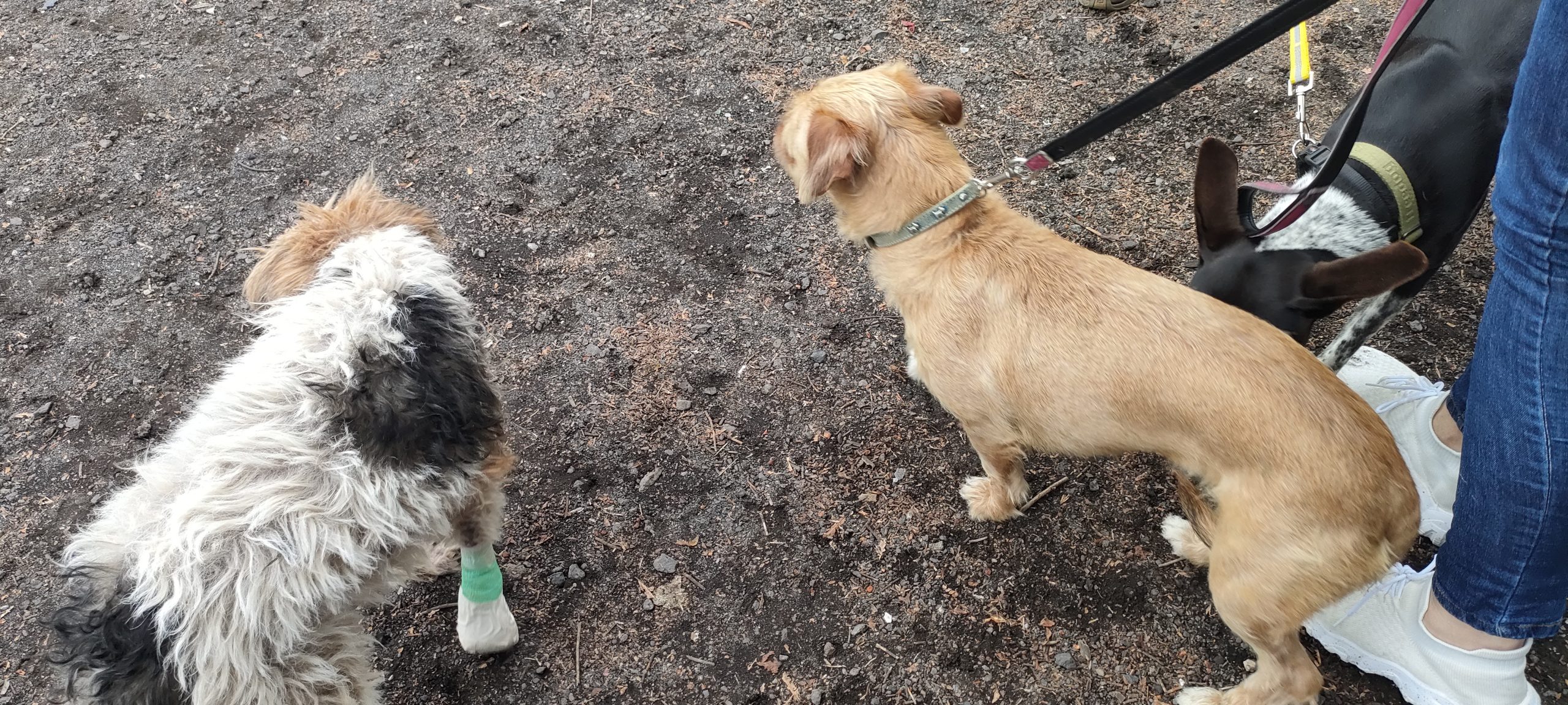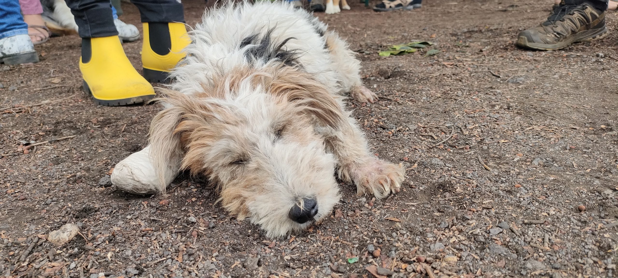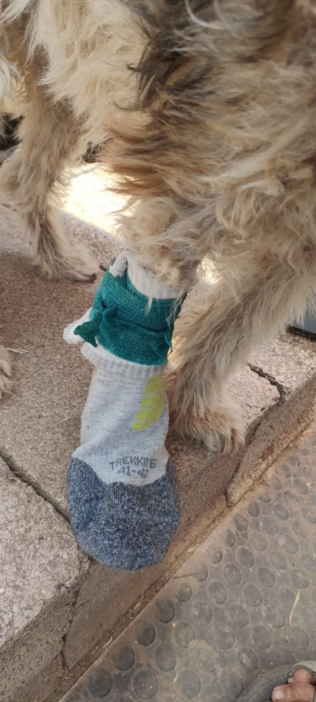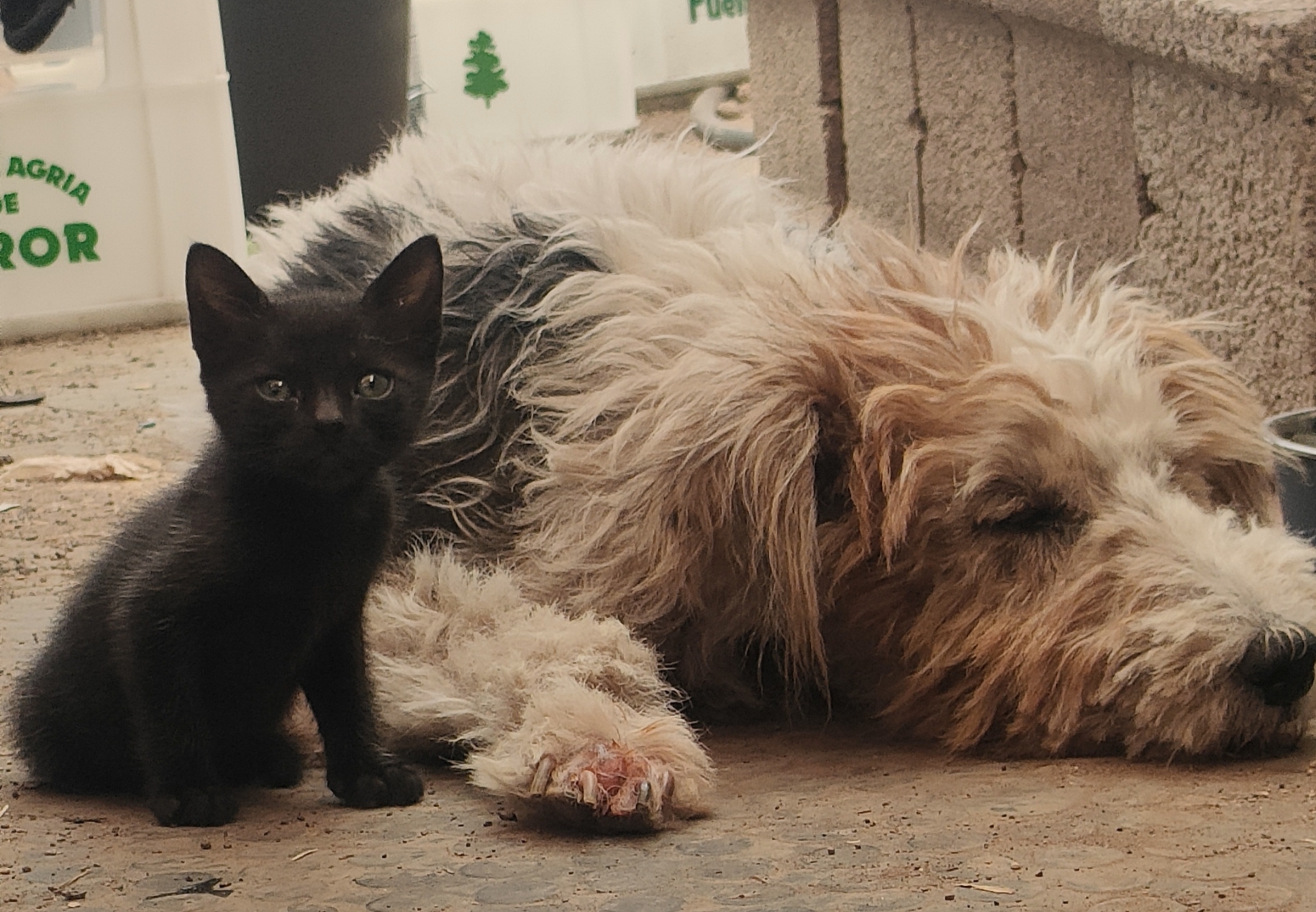 Gestern war das große Fincatreffen, aber ich musste erst mal mit Bimba zur Tierärztin, weil ihre Pfote entzündet war. Unsere liebe Sandra musste die Pfote aufschneiden, um einen fiesen Stachel zu entfernen, der sich in die Tiefe rein arbeiten kann!