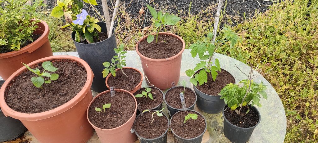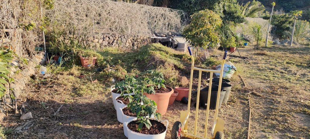Von den Physalis in lila, grün und gelb, werde ich jeweils nur eine Pflanze groß ziehen. Ein paar kleinere ziehe ich nur zum weitergeben. Javier bekam gestern bereits diese drei Sorten und die Zuckertraube Tomate, die jetzt bei uns unten Tal wachsen.