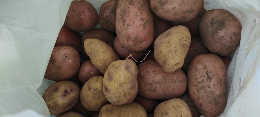 Gestern brachte ich Rositha und Manolo Eier, von denen ich viel zuviele habe. Sie gaben mir dafür frisch geerntete Kartoffeln mit: