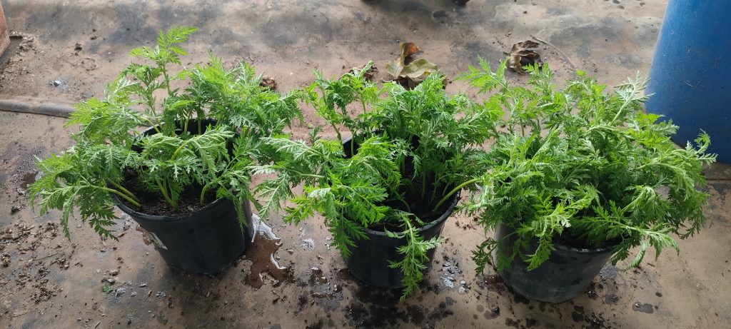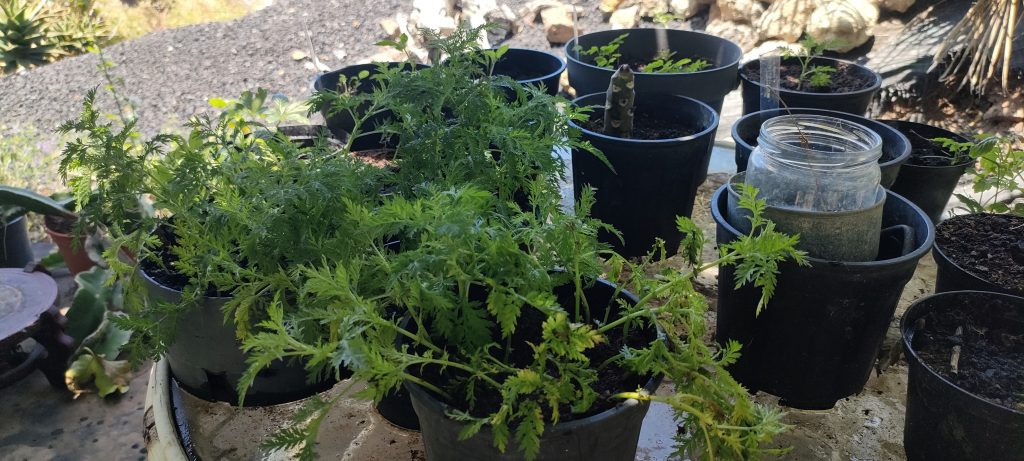 Eben steckte ich die Artemisia Stecklinge, aus dem Wasser, in die Erde.