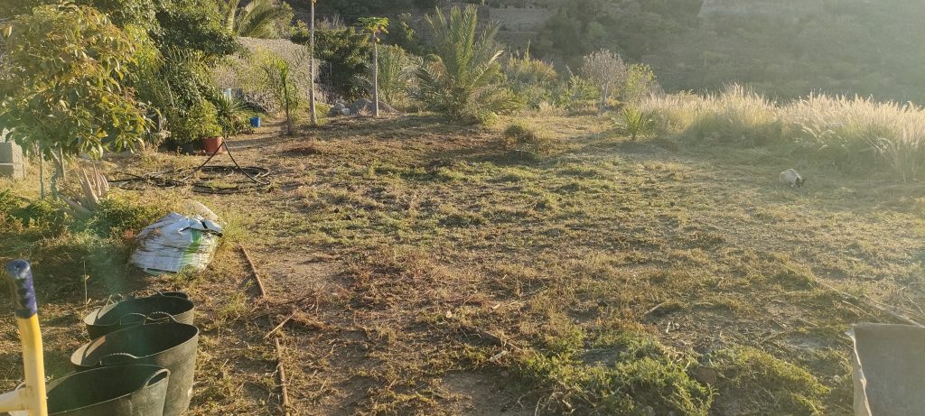 Beim ersten Durchgang zerhacke ich erst mal die Büsche von oben runter und lass dann die Sonne für mich arbeiten.