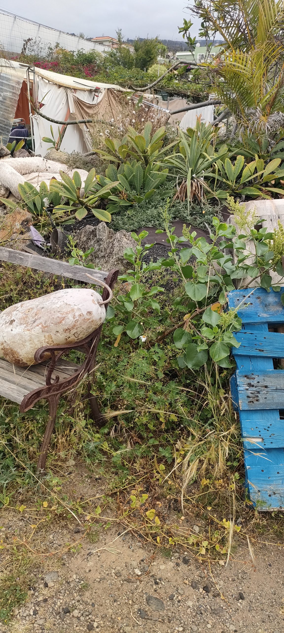 Beim Lagern wird die Erde von den Würmen aufgewertet und diesmal sogar vom Regenwasser Teils entsalzt. Etwas Torf zum leichter machen, immer wieder Kohle und frische Mikroben. So wird die Erde, deutlich spürbar, immer besser! Weder die trockene Steinlandschaft, noch der Wildwuchs, saufen mir das Wasser ab! Den Standort kann ich auch noch mit der Sackkarre verschieben! Eine gute Alternative zu dem Wurmbeet und dem Melonengraben, die man oft tagelang, gar nicht gießen muss.