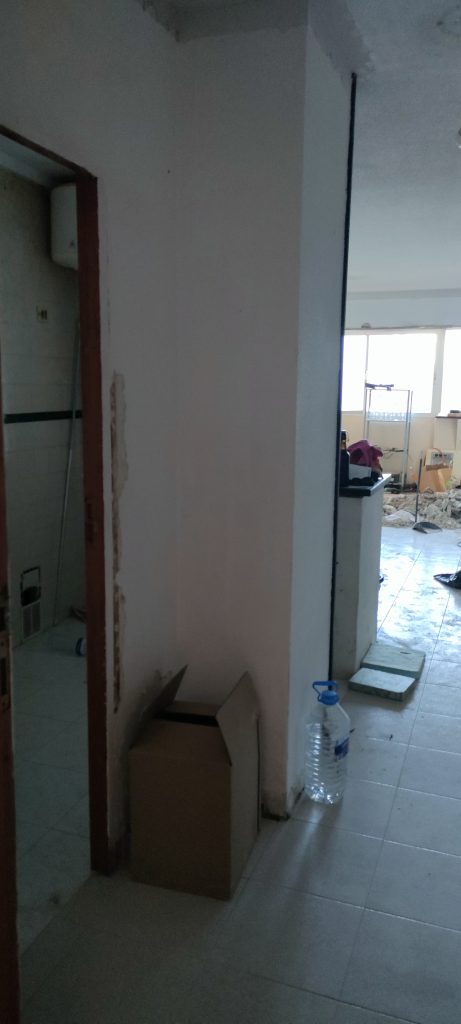 Mittags, eine Ladung Richtung Heimat abgeladen.Abends, eine andere bei Orotava.Die obere Wand zur Küche ist auch ganz geöffnet. Kabel verlegt und sie werden hier auch bereits verputzt.