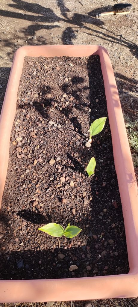 Die siebte Kurkuma Pflanze treibt.