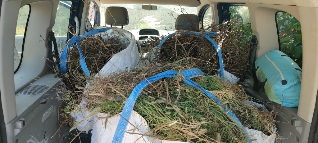Nach der Ernte kommt gleich der Schnitt. Keine Zeit für „Vorher“ Bilder, aber man sieht ja den Anteil, der auf dem Boden liegt. Den Lippens schnitt ich radikal, weil der muss nach Oben wachsen, sonst hängen die Früchte nachher wieder zu tief!