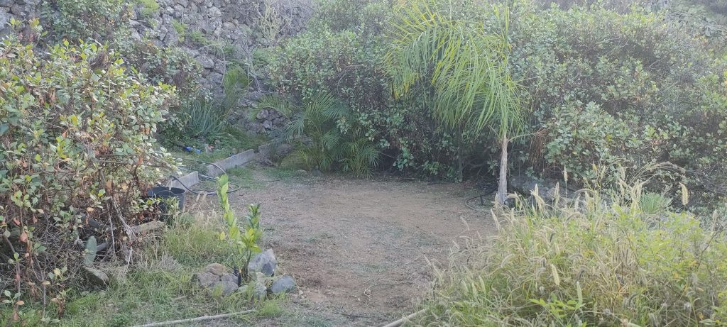 Das Ende von meinem Pfad am Schuttberg. Der Pfad wird rechts noch weiter aufgehäuft und in dem Gestrüpp schneide ich gleichzeitig eine Fortsetzung frei.