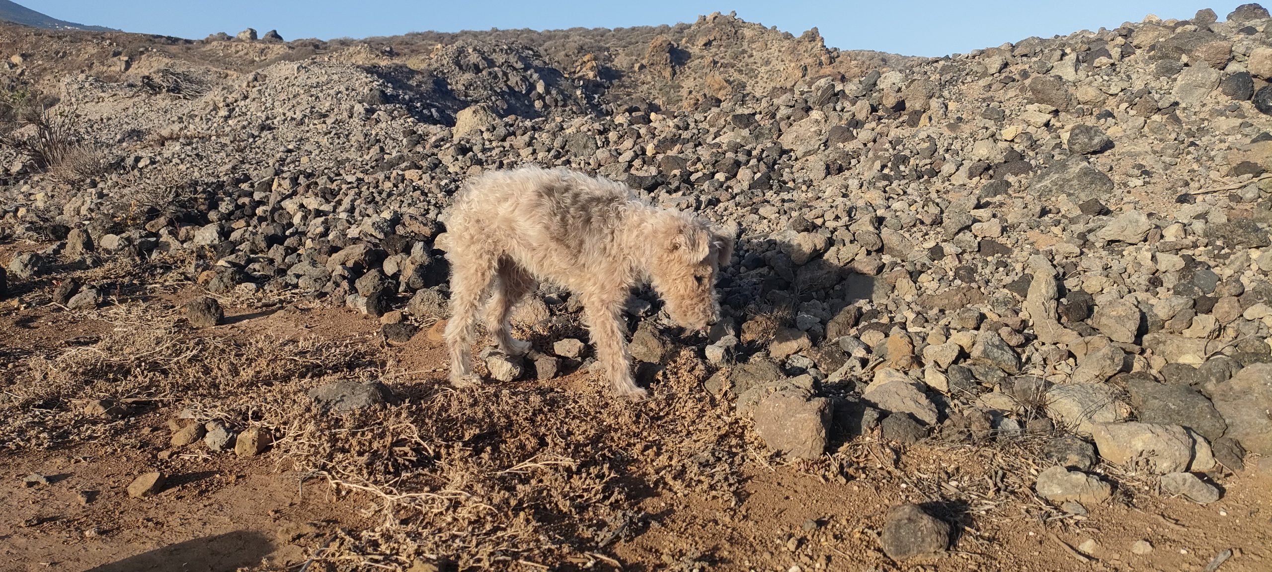 Jedes mal wenn ich Schutt ins Tal bringe, hole ich ein paar alte Lava Steine, in allen Farben. Damit macht es auch Spaß, den wichtigsten Weg auf der Finca zu schmücken!