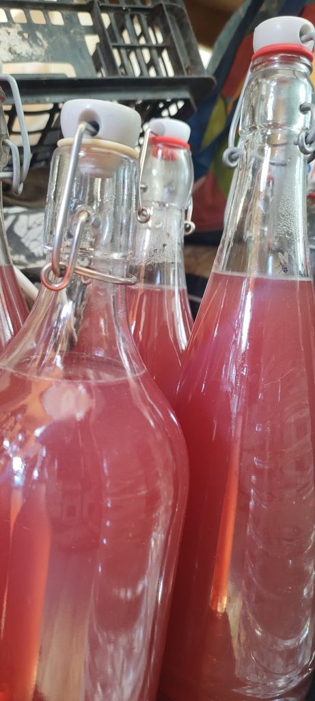 Ich hab für meinen Gast extra eine riesen Menge Kombucha vorbereitet, den man nur noch aromatisieren und abfüllen muss!