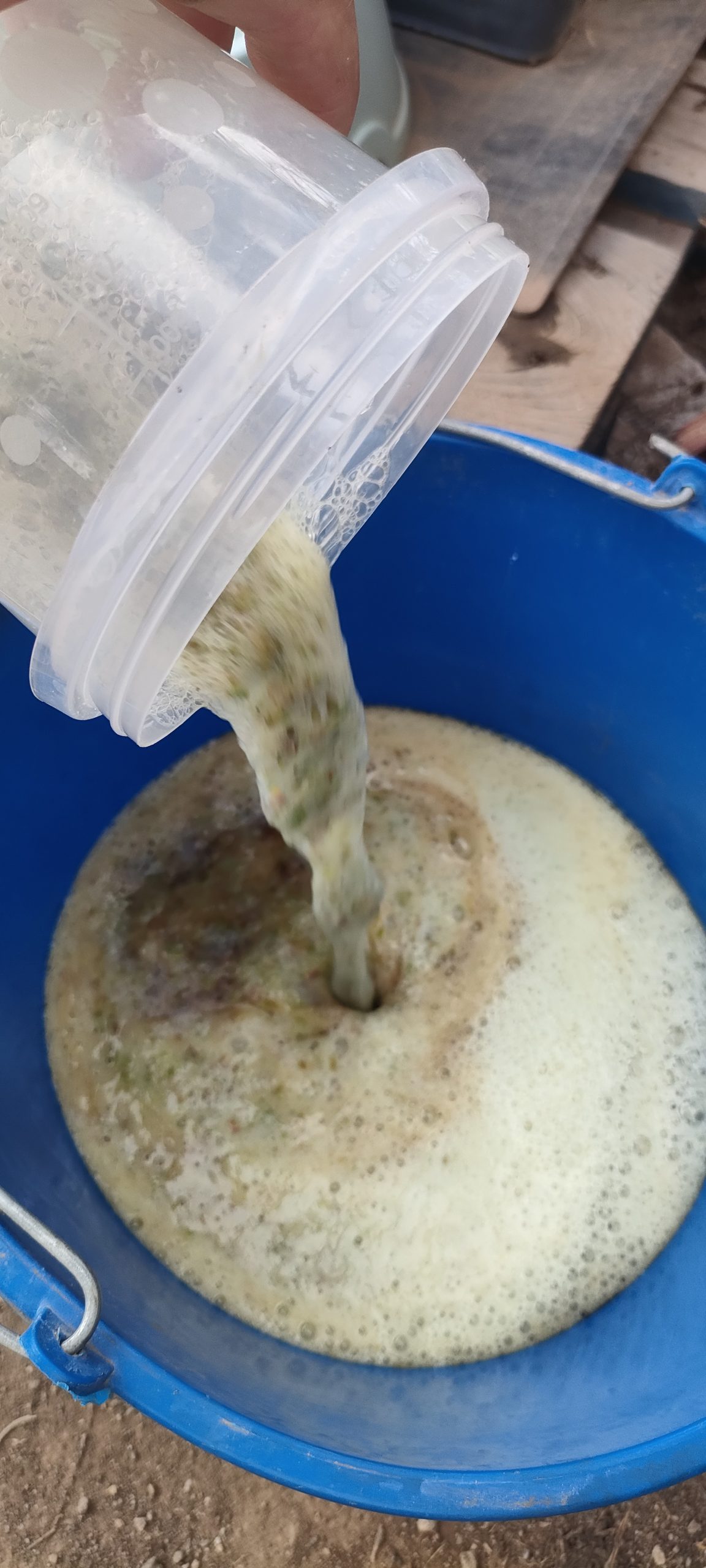 Gestern bereitete ich einen schönen Dünger vor: Hefe mit Zuckerrohrmelasse, durfte über Nacht, mit Mikroorganismen wachsen. Plus Aloe Vera, 3 verlorene Eiern und Pilzsporen, konnte ich mit einem Eimer Konzentrat, eben fast die ganze Finca gießen.