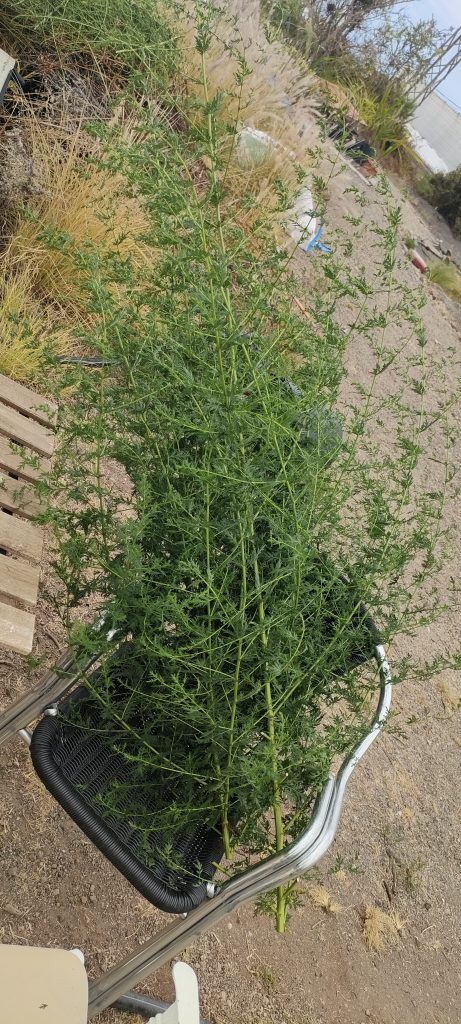 Hier steht eine Artemisia Mutti neben meinem 2,50m. Stab. 😳 Die dürfte so 3,30m. haben.