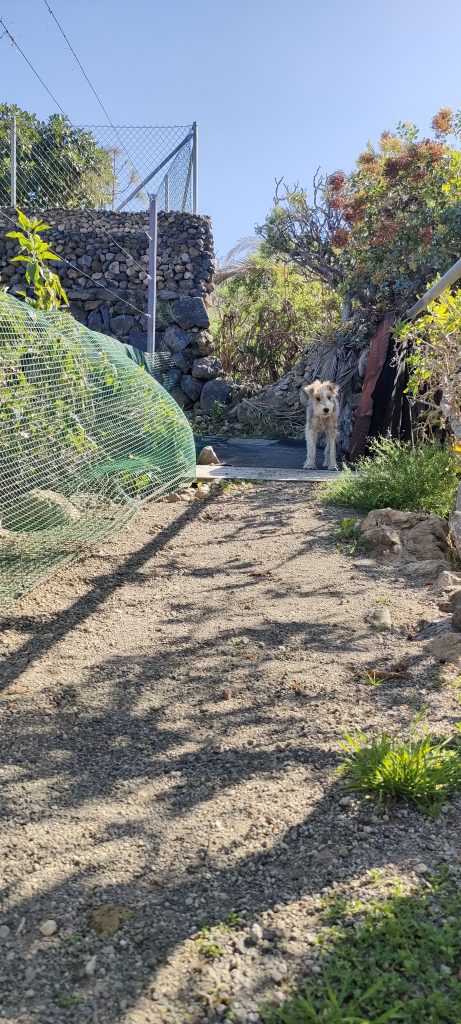 Erst suchte ich die Finca ab, dann lief ich in meine Gasse, als ein Nachbar mit ihr entgegen kam. Ich war erstaunt, wie schnell sie ihm hinterher rannte! Tja, er hat selber zwei Hunde und bestach Bimba mit Hundebiquits! 😀