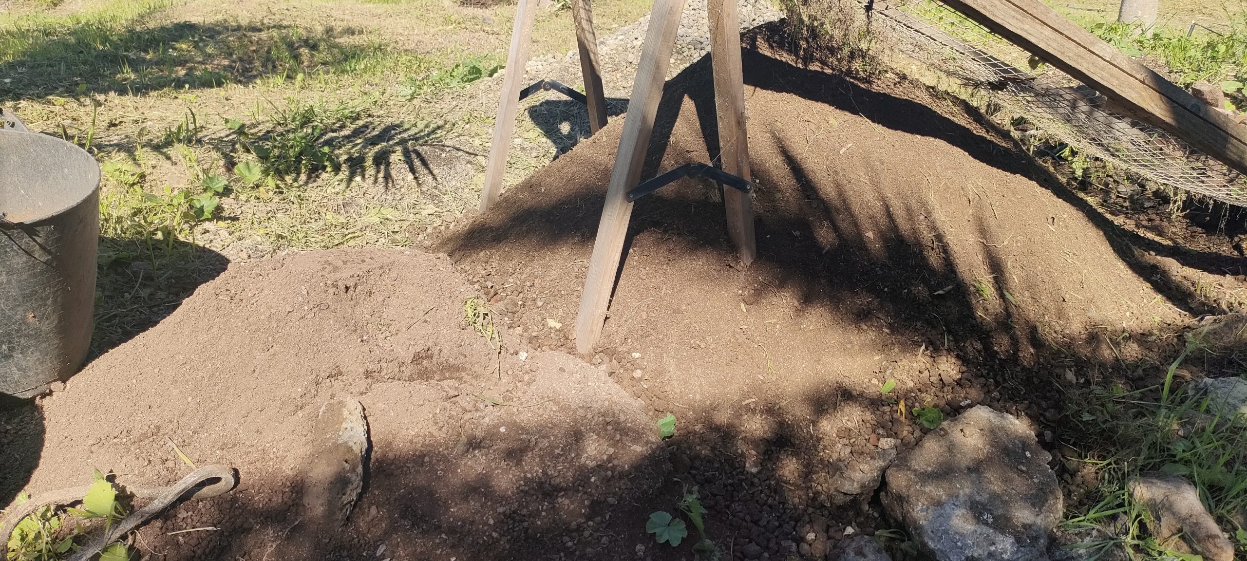 Trotz der unerbittlichen Kälte am Morgen, hatten wir heute mal wieder einen schönen Tag! Hier soll es wieder voran gehen! Als Nebeneffekt, werden erst mal die Hühner mit frischem Grünzeugs verwöhnt:
