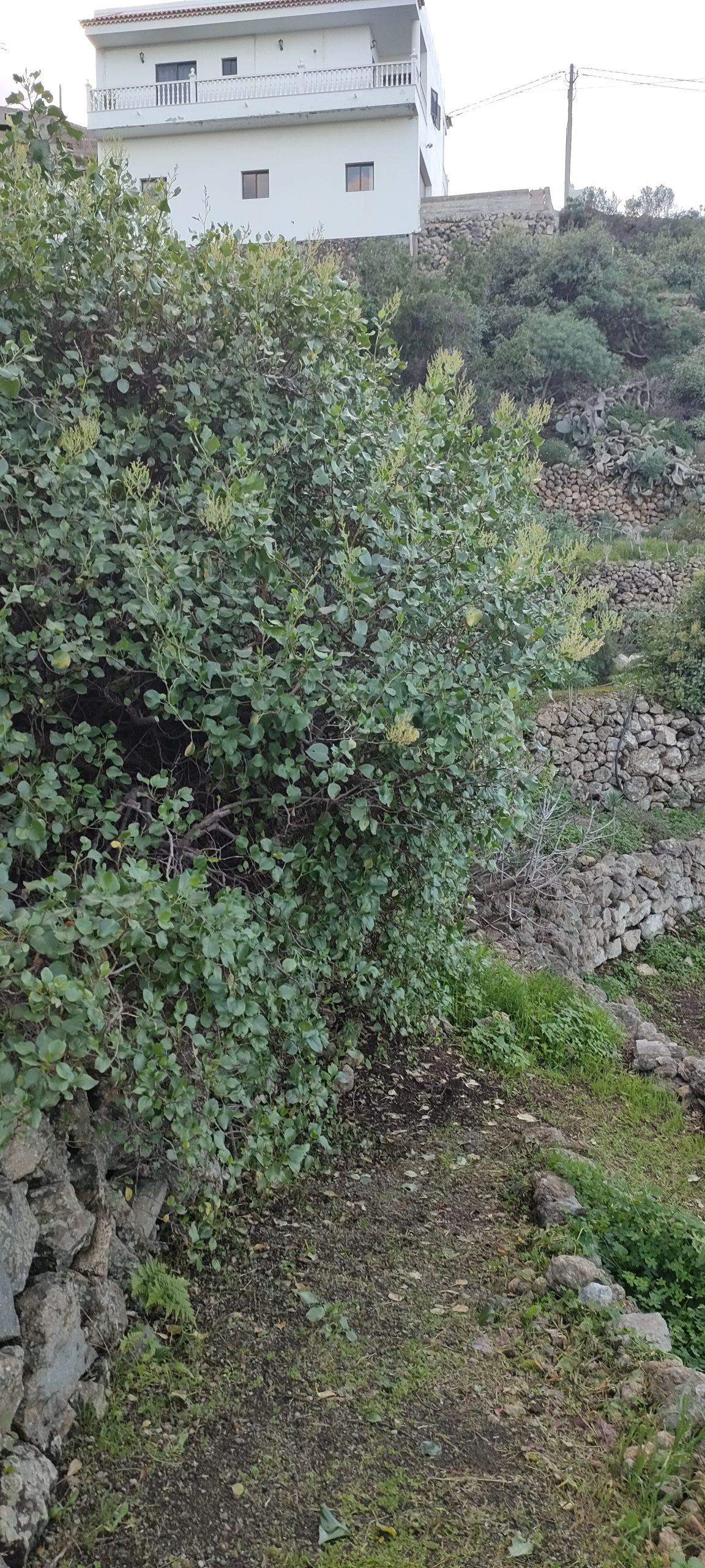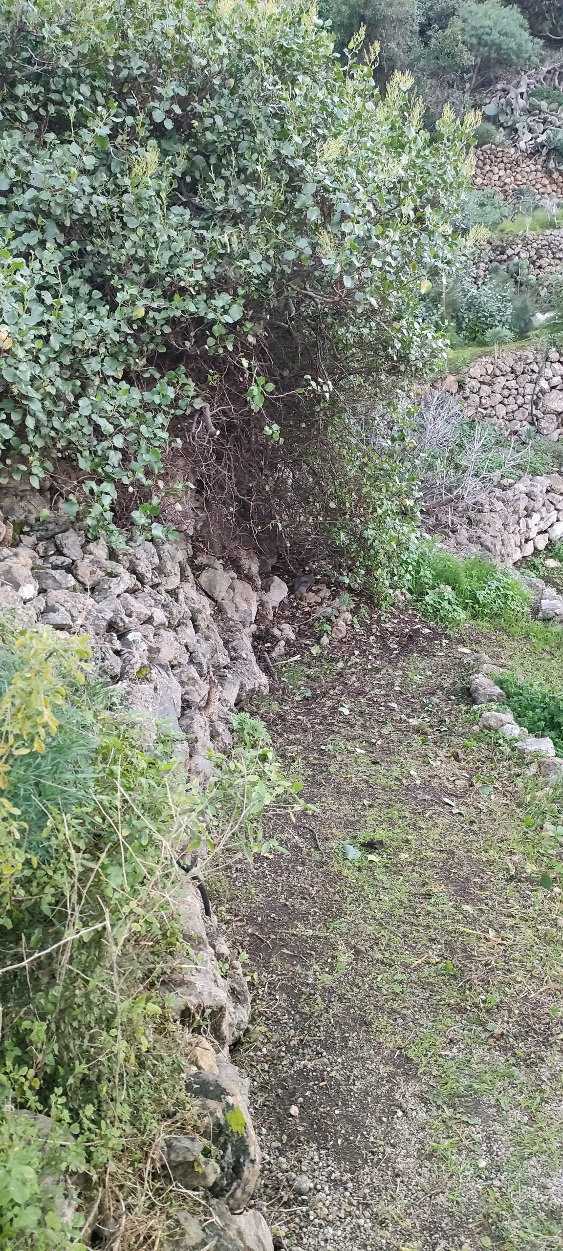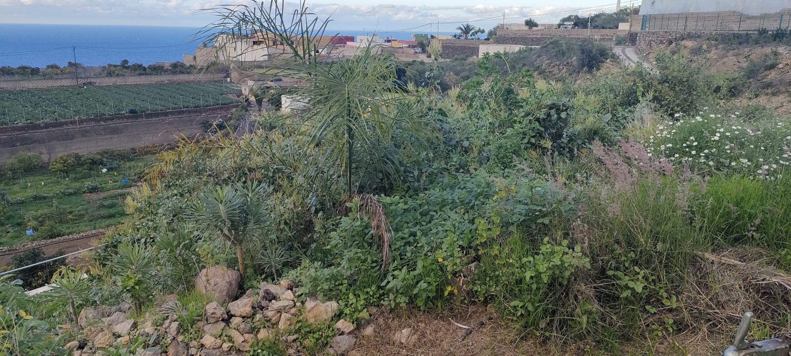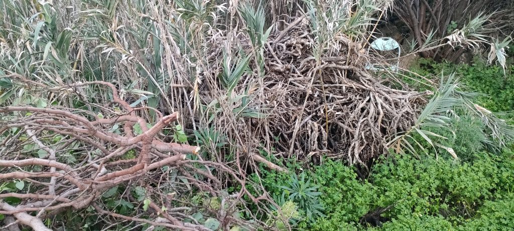 ⬆️ Derselbe Busch von oben. Das muss alles weg, bis man nur noch zwei Palmen sieht.