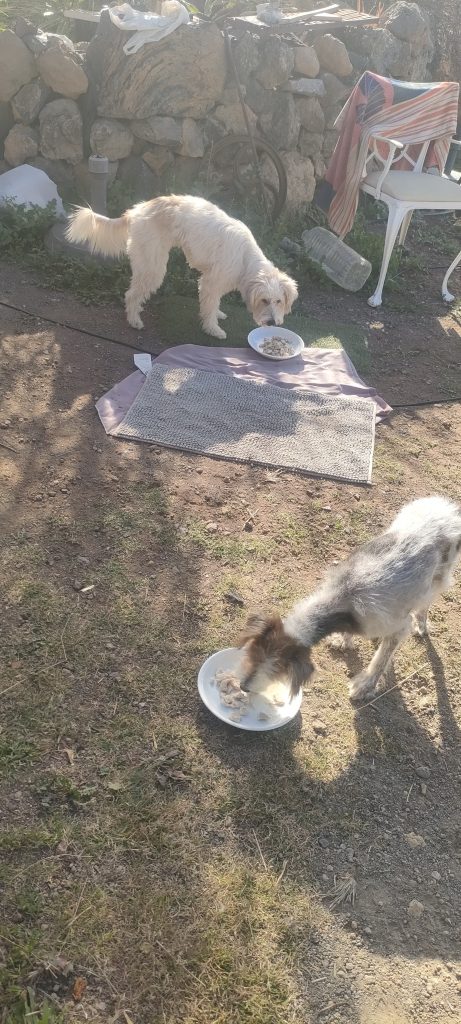 Cocolisa fand es noch nicht so lustig und beim Fressen gab es auch gleich mal ein Gezanke! Aber Beide sind lieb und das Geknurre sorgt auch für einen Energieschub.