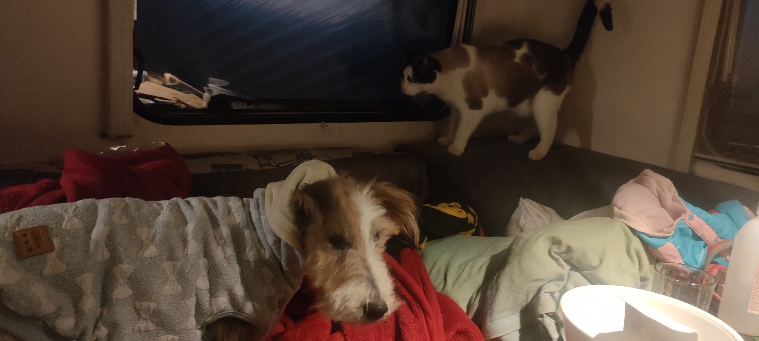 Eben ist die traumatisierte Maus aus dem Schlaf hochgeschreckt und hat sich auf meine Stimme sofort wieder entspannt! 🥰 Das war heute ein sehr schöner Start!
