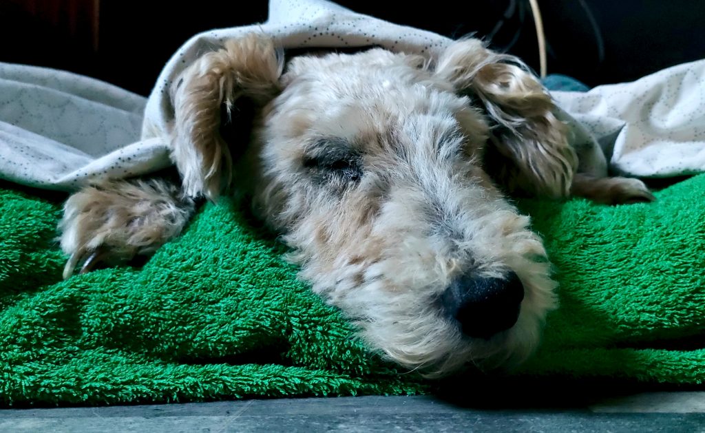 Jetzt sind alle drei Mädels da. ☺️ Ester kümmert sich rührend um Bimba! Ein Natur Heilmittel gegen das Jucken und nach 15min. kam der Kegel wieder weg. Bimba macht heute ganz lieb mit.