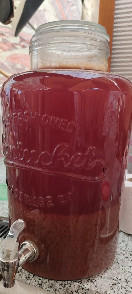 ⅓ ging gleich in den nächsten Kombucha. Damit war es aber auch Zeit, eines von zwei Kombucha Fässer komplett zu reinigen und mal wieder ohne Scooby neu anzusetzen.