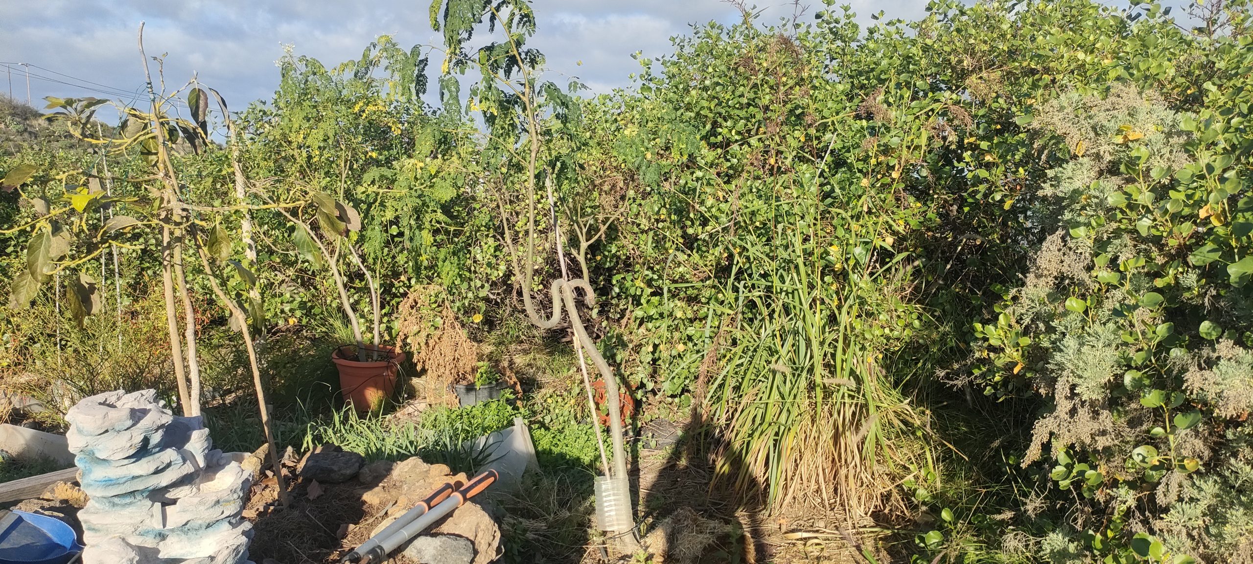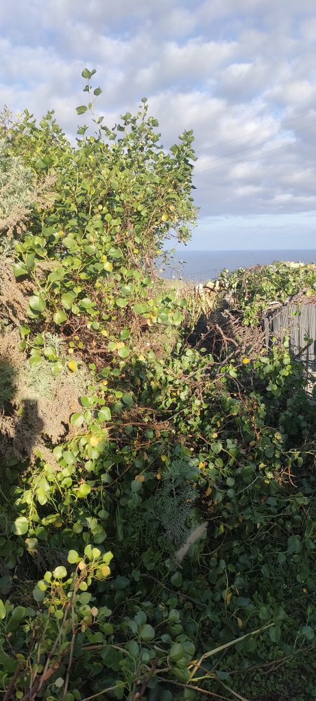 Dieser Busch soll als Windschutz vorerst noch stehen bleiben, aber auch gestutzt werden, damit der schnell wachsende Busch nicht umfällt.