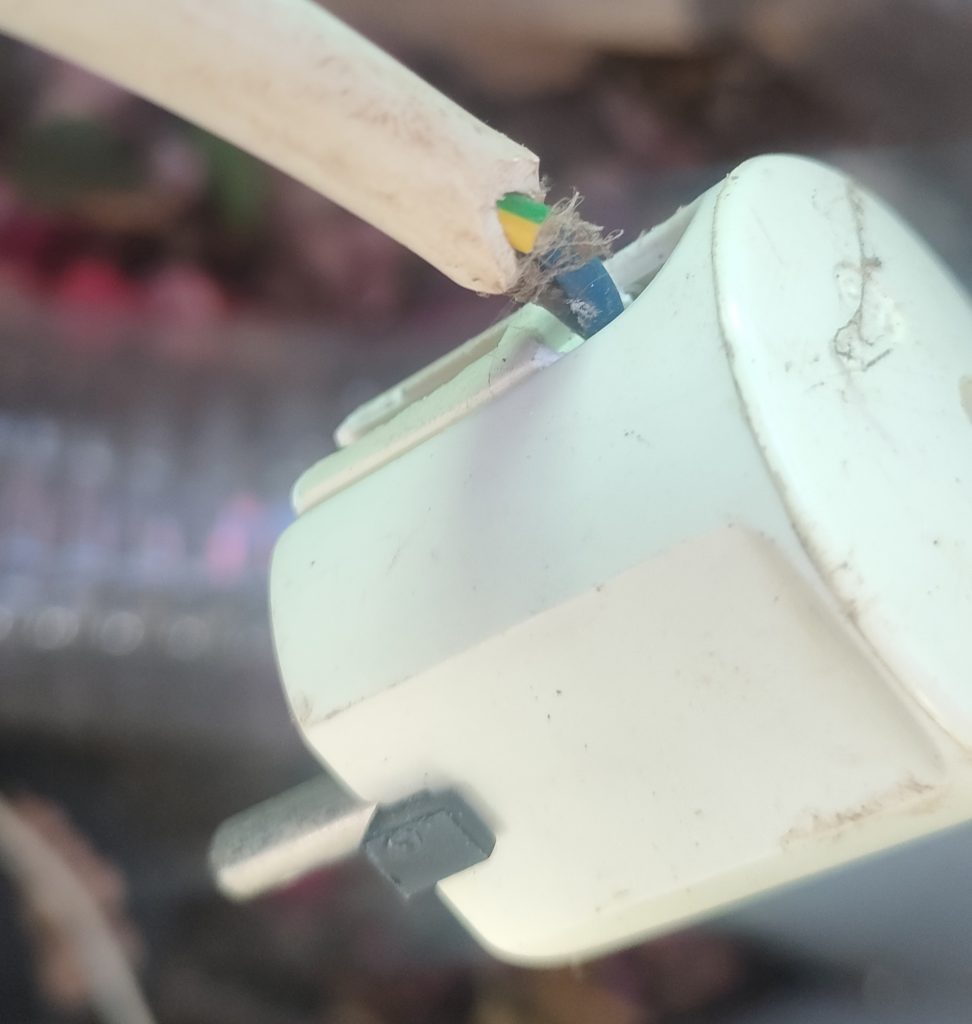 Auch am Stecker, an dem sogar ein Anschluß wäre, war das Kabel einfach abgeschnitten. 😳 Das alleine hätte ja eh nichts gebracht! 😀🤦🤦 Dann fand ich auch eine abgeriebene Isolierung, die wahrscheinlich eine Ursache war, weil die Sicherung immer rausflog als ich am Kühlschrank stand.