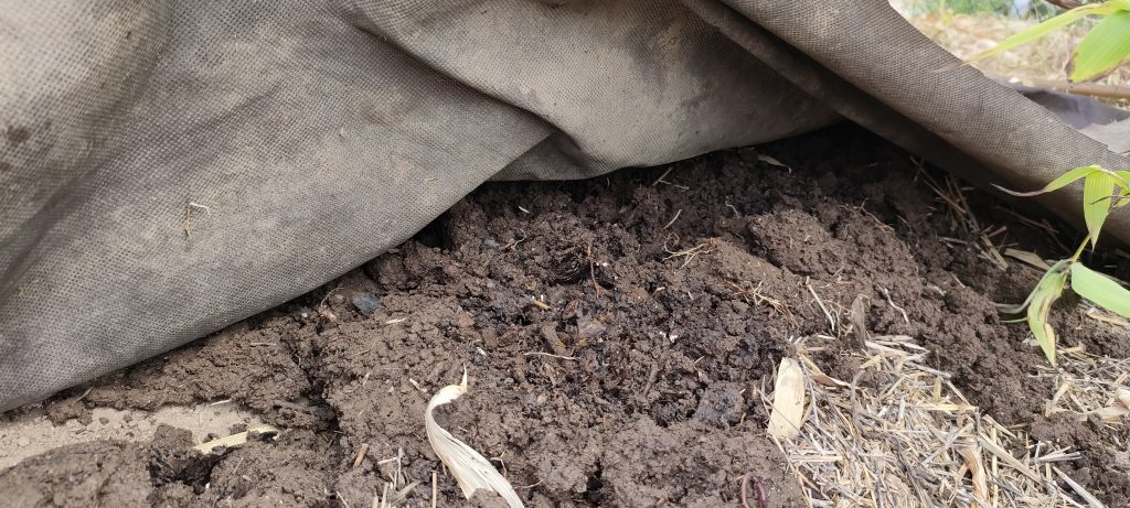 Hier räume ich nach ca. einem Jahr, eine Wurmzucht aus, die direkt und ganz tief, in einem Maracuja Beet steckt.