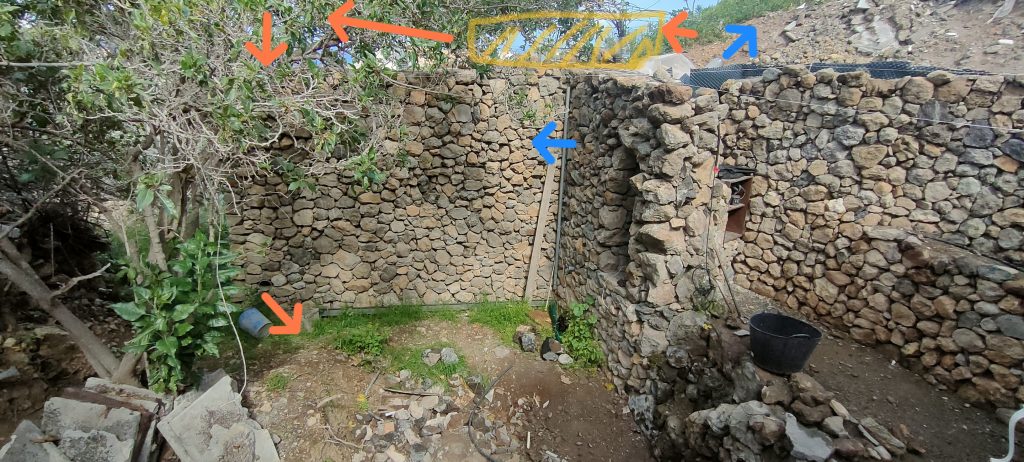 Hier kommt ein 30m. Kabel für einen Lüfter raus, der seinen eigenen Durchbruch, Richtung Hang, haben soll. Am Ende vom Hang wird das 125mm. Rohr für die Erdkühlung enden.