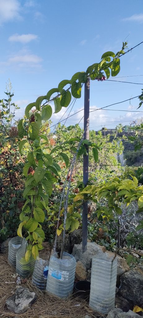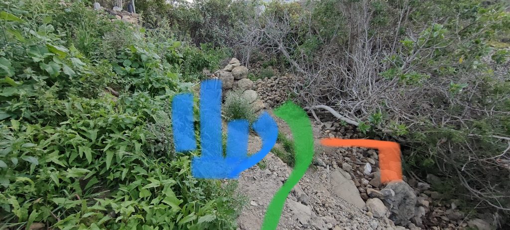 ⬇️ Orange, wird die Terrasse wachsen, damit: Blau markiert, die Bambus Terrasse sicher hoch gezogen werden kann und: Grün, genug Platz für einen Weg ins Tal fortgesetzt werden kann.